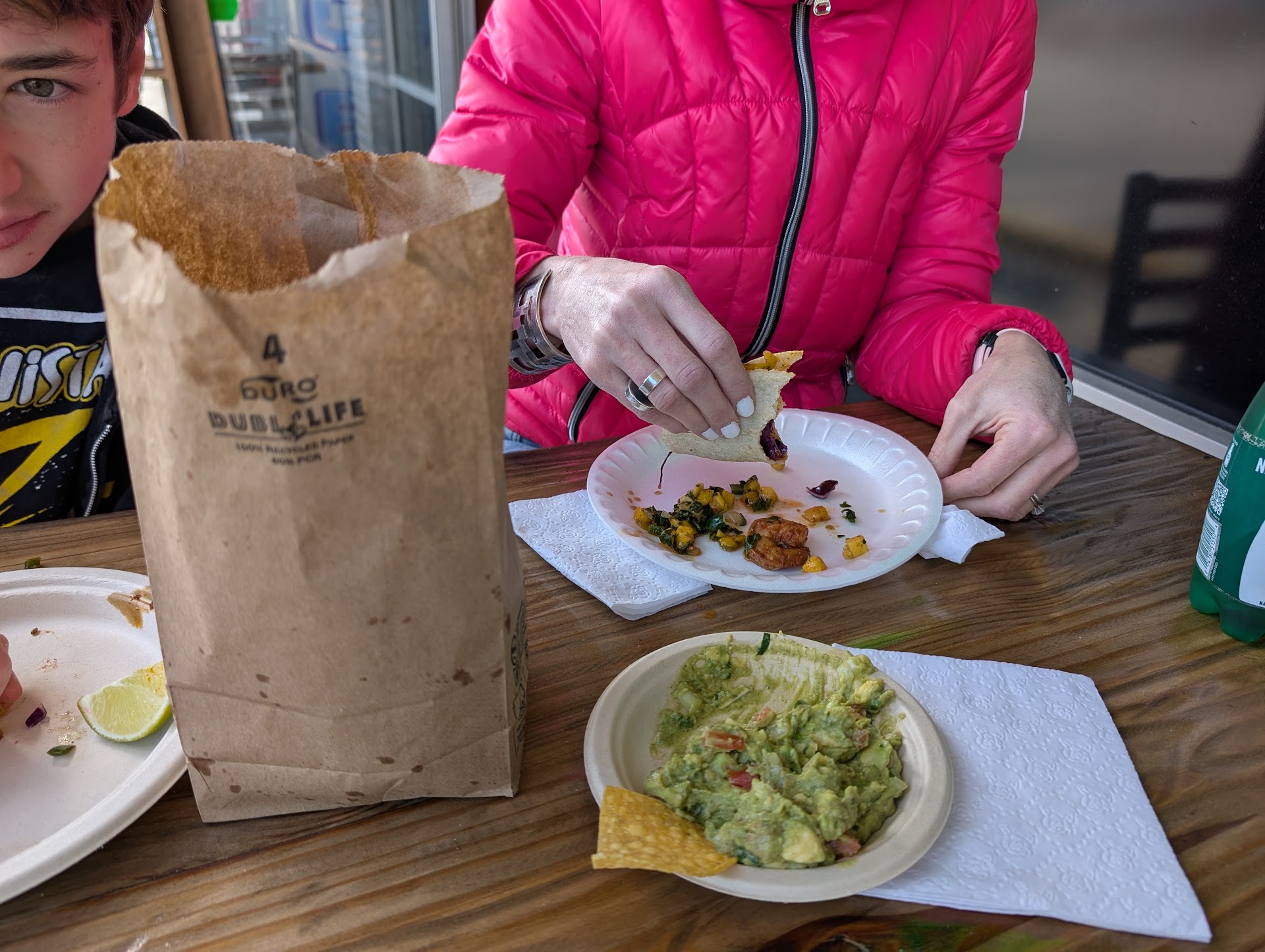 Read moreI wasn't impressed. The taco's we're tiny. The salsa was super sweet. ( I hate sweet salsa) The service was terrible. I sat at the bar and the lady behind the counter kept putting "to go" orders in front of me. Like literally between me and my drink and all around me. I moved some of the boxes away from me, but she kept putting them in my way. Rude!! I eventually got up and went to a table. I told the bartender that I wanted my chips before my food. I sat there about 25 minutes before he brought me out chips and salsa...and he didn't forget. I reminded him once. I ordered the California burrito with fries. Get this, the fries ARE IN THE BURRITO! I didn't like that at all. That should have been specified. The food was mediocre at best. It's kinda like Moe's but wayyyy more expensive. It's not really a table service restaurant.. I will say the young girl making the food behind the counter needs to be commended. She was very friendly and was working her but off....and another thing that was funny to watch is how many people this restaurant turned away. While I was there 45 min, they turned about 20 people away because they said it would be close to 45 minutes wait on food..why doesn't that lazy bartender get back there and help...