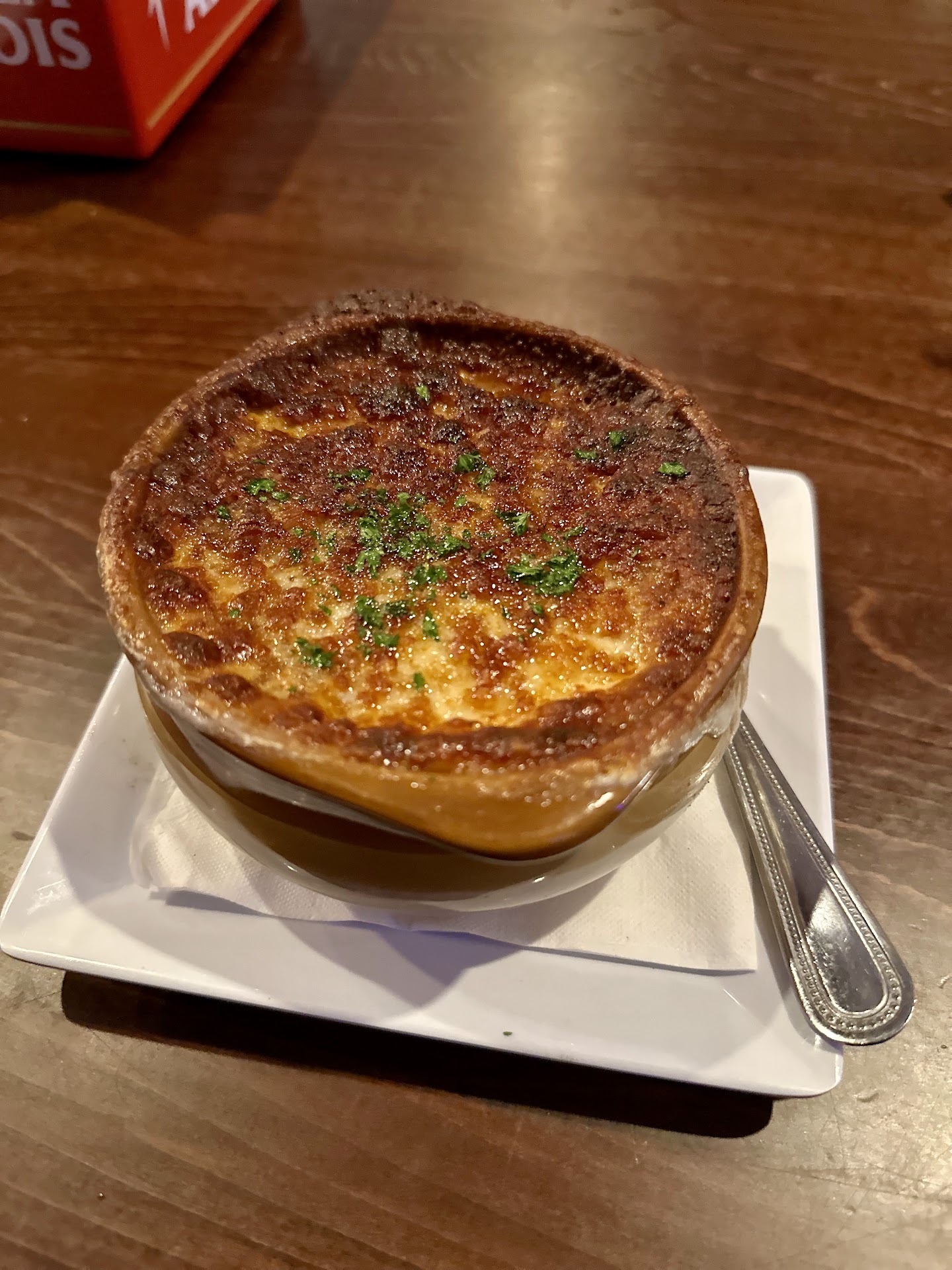 Original reviews showed great promise but the real experience was absolutely tragic. Ambiance was not too bad but I knew we were in for a wild ride when we received our scotch egg appetizer. Pretty much a very dry breaded egg which would have had the potential to at least be edible until we tried the horseradish sauce that came with it. We managed to finish the egg without the sauce but I would certainly never recommend it. Regardless, these things happen and tastes differ so we were more than willing to overlook this and move on. We were certainly happy with the pretzel with cheese sauce but that was the extent of any further possibilities for a good review. We ordered mostly the pies which included the chicken pot pie. While the dish arrived hot, we were extremely shocked to discover that one hour before closing the restaurant staff was placing all of the chairs on top of the tables for closing. It was an extremely unwelcoming sight. This was occurring 1 hour prior to closing. (see picture). Regardless, we decided to press on and at least try to enjoy the food. After many attempts to get through the chicken pot pie, we gave up because the entree only contained chicken skin and no chicken meat. We of course may not be experts in English food but I would hardly envision a chicken pot pie made exclusively with chicken skin. The vegetables were somewhat raw or possibly on the al dente side of things but I was prepared to overcome that culinary deficiency if the dish at least had chicken meat in it. The copious amounts of salt I added to the dish was still not enough to overcome the chicken skin. (see picture) At that point, I was absolutely disgusted and pointed out the chicken skin and chairs to our sever when I requested our bill. I was of course shocked to discover that even with my pointing out the chicken skin pot pie, the server actually left the charge for the dish on the bill. In almost any decent restaurant, a complaint of such nature would send any competent manager running to address the issue and certainly remove the offending meal from the bill. To the servers credit, they did offer a free desert but to leave the dish on the bill was actually pretty insulting. For anyone reading this who may think I am some kind of Karen trying to get a free meal or something, please note that I think in 10 or 15 years I have taken the time to write possibly one negative restaurant review. The bill came to $ 200 so we were not worried about the cost of one entree. So this is a pretty real review. It was just a situation that we could not overlook. Perhaps there is no management in place which is why they decided to close early although another party entered after we received our food so not sure. One thing is certain, we would never come back this restaurant again unless we could cook...