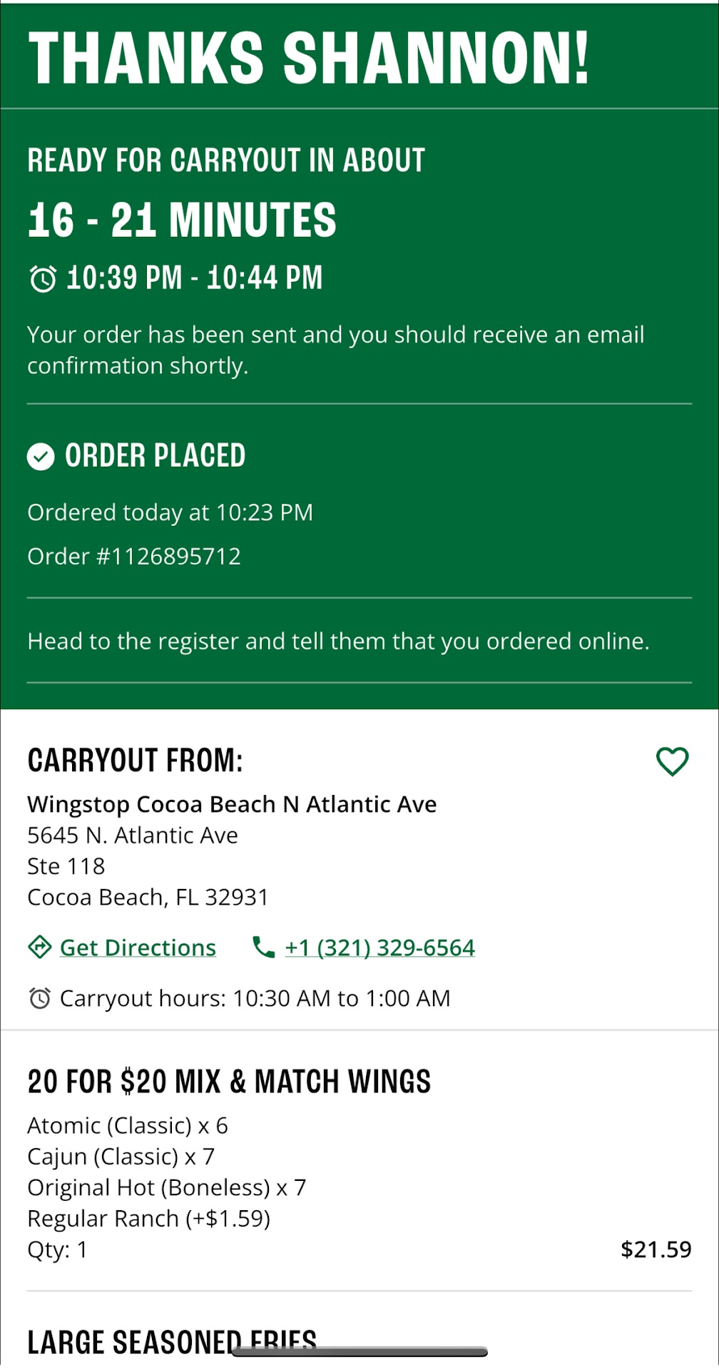 Read moreI've been a couple times and it's been great so far but this time, I'm extremely dissapointed... Our whole order of boneless wings were clearly double cooked and are completely inedible. I feel like i'm going to break a tooth trying to bite into them. I tried to call the store and you hear some recording about 5 seconds long that you can understand a word of that keeps repeating every few seconds, then the call drops. So I guess, I'm stuck throwing away my whole entire order. I was really looking forward to dinner tonight but I guess...