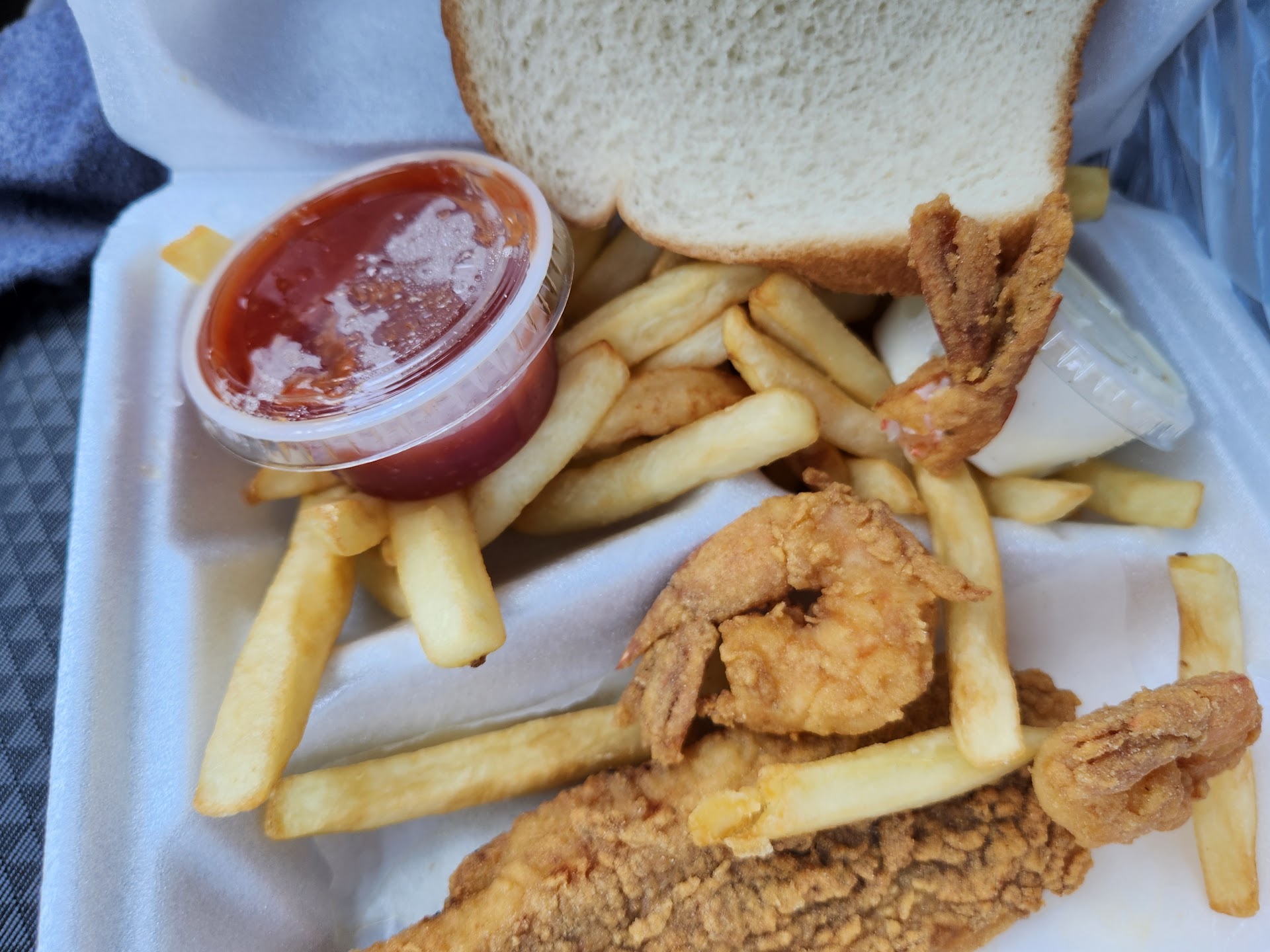 Read moreFirst, things were going well. I ordered food for my great uncle and me and waited for it to be ready. I asked if the fish and shrimp lunch meal came with fries, and the lady in the front (Gale) said no. I ordered onion rings (which were ridiculously $7.00, but since my great-uncle wanted them...I got them). She brought my food out: one meal was correct, and one was wrong. I explained that I asked for the fish and shrimp meal and ordered onion rings because of what she said (the wrong meal came out with fries, which let me know it was wrong). She wanted to argue with me up and down about what I said. I decided to pay the difference in the meals so my uncle could get the shrimp (if it were up to me, I wouldn't give them a penny more). At that point, I was frustrated because my food was getting cold because the cashier had heard what she wanted.