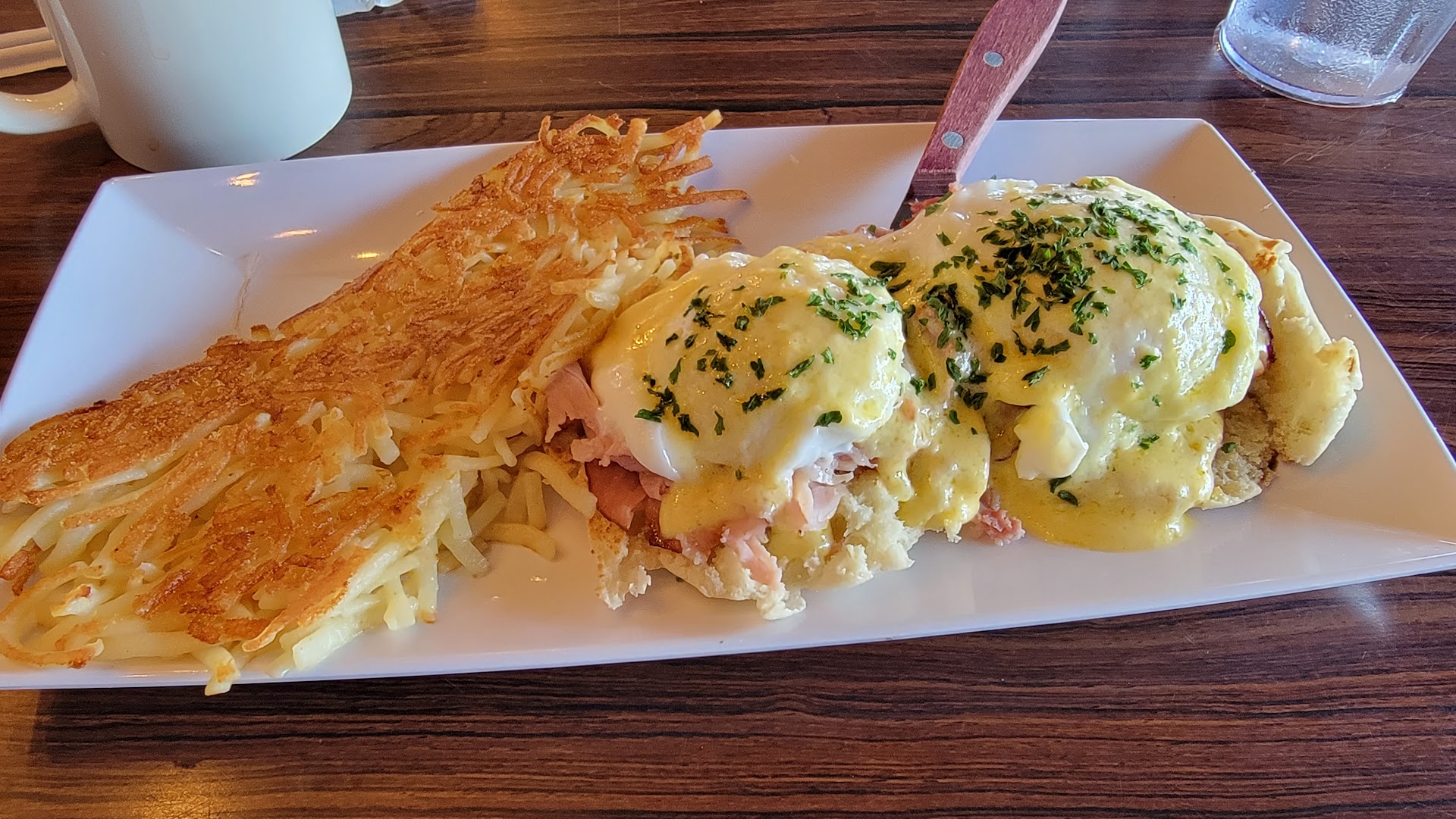 Knowing what it's like for a server i wouldn't usually penalize them on the tip for what mostly was kitchen issues, but since she wasn't around for us to send things back to the kitchen and the ridiculous a la cart price for 2 eggs (i could buy 18 eggs at that price and still have money left) i left a measely $2 tip. If food is bad but the server is present, ready to fix issues, filling drinks as needed, then I'd rather pay the server more than 20% for all the trouble (heck if the food is really awful to inedible standards I've gotten food comped and tipped the server the cost of the check for her trouble). But bad service plus shoddy food makes for a terrible experience.