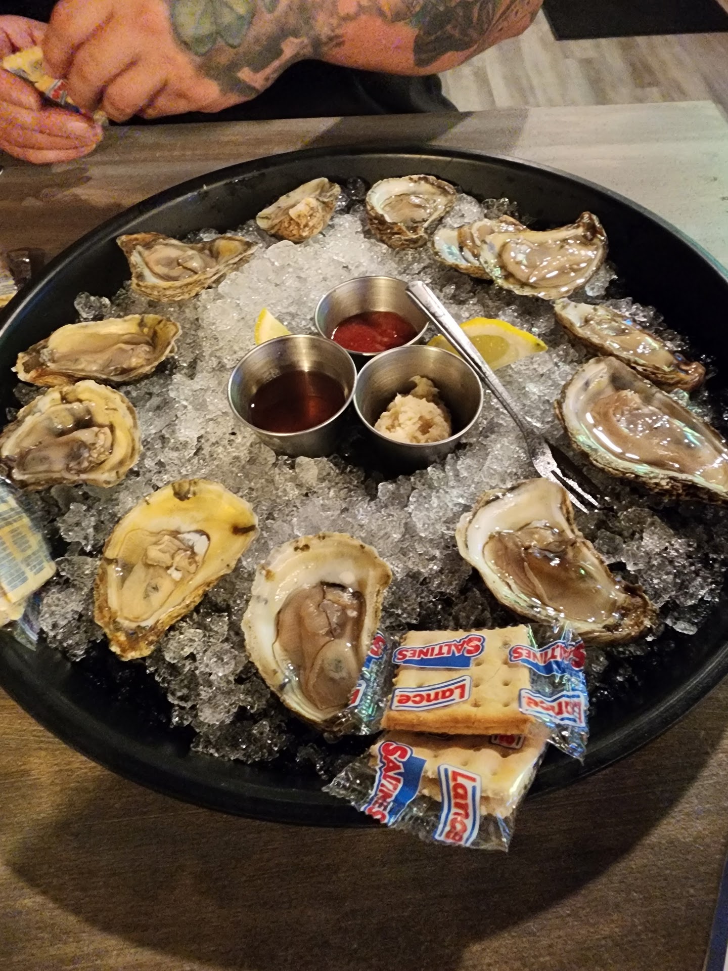 Read moreThis is the best addition to cocoa village!!! We had the Percil oysters, and they were so clean and fresh, perfect start to an amazing dinner. The lobster bisque is one of the best I have ever had. Smooth, creamy, and oh so yummy. It was like a warm hug on the inside. Snow crabs were absolutely đŻ delicious, steamed to perfect, melt in your mouth. Comes with choice of 2 sides. We had their steak fries and Brussel sprouts. We had some lobster bisque left and began dipping the fries in it. Omg you must try this. We washed the meal down with an Irish mule made by Steven!!! Steven was our bartender and server! I can't say enough about him! Very knowledgeable, super friendly, great smile, awesome bartender, and attentive. Oysters shooters is a must try restaurant for all. If you love seafood you will not be disappointed! And don't forget to say hi to Steven! Oh, and the best part....the shells from the oysters you eat at this restaurant will be used to create habitats for living oysters in the Indian River Lagoon. You can ask your server for more information.
