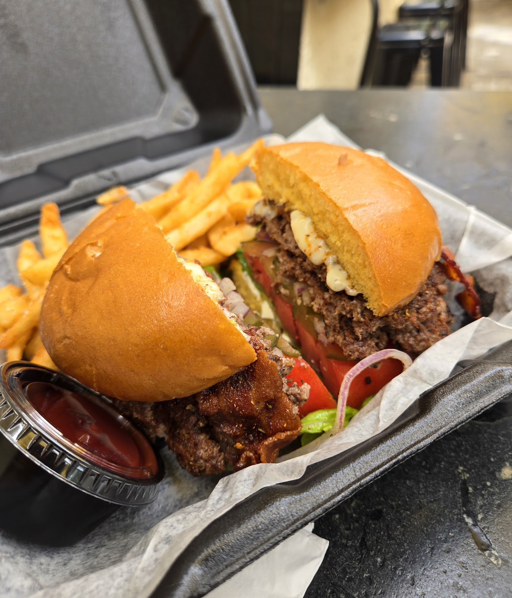 Read moreI am blown away by the fantastic level of service at this place. The second we walked by, the owner Doug called us over to give our dog a treat. He made us feel so welcomed! The price for the burger was spot on, offered to cut our burger in half, and the burger and fries were AMAZING.l!! Perfectly cooked, tons of toppings, fries were crispy. He even gave our dog bottled water, and made a bonus side of funnel cake fries to treat our daughter. I haven't even been in this town for 30 minutes and I cant wait to come back here already. All restaurant owners should be personable and passionate like Doug- he is untouchable! Ten stars...