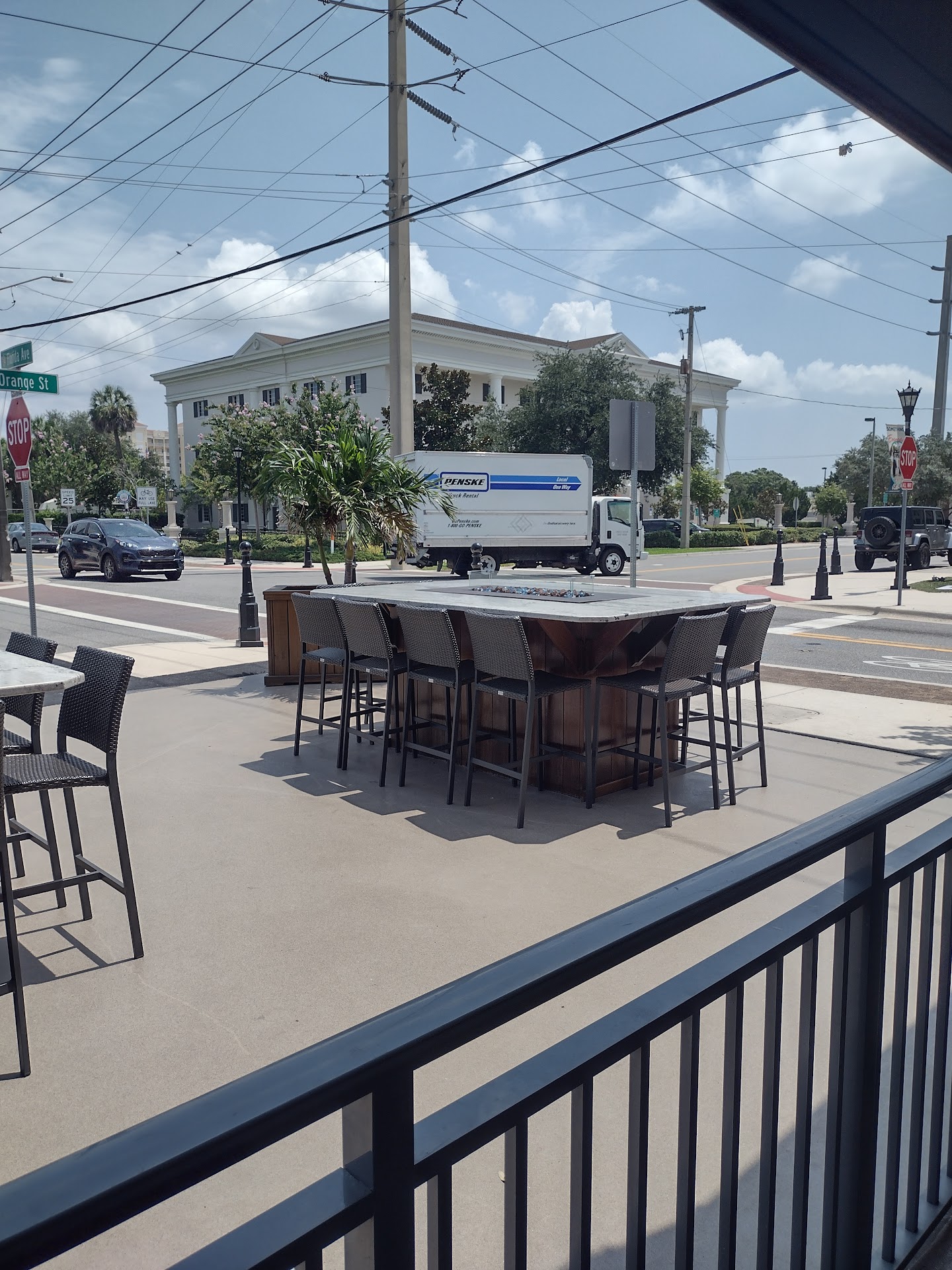 It's got a great location near Cocoa Village but far enough from the Knick Knack shops that it's convenient. Parking isn't great, but there is some, so they don't lose points over that. The building is relatively new and in great shape, sporting indoor and outdoor seating, along with a well-stocked bar and more TV's than is probably healthy. The staff is friendly and efficient. (Our server smiled sweetly and called me, "Babe." Grumpy old men like when that happens.)