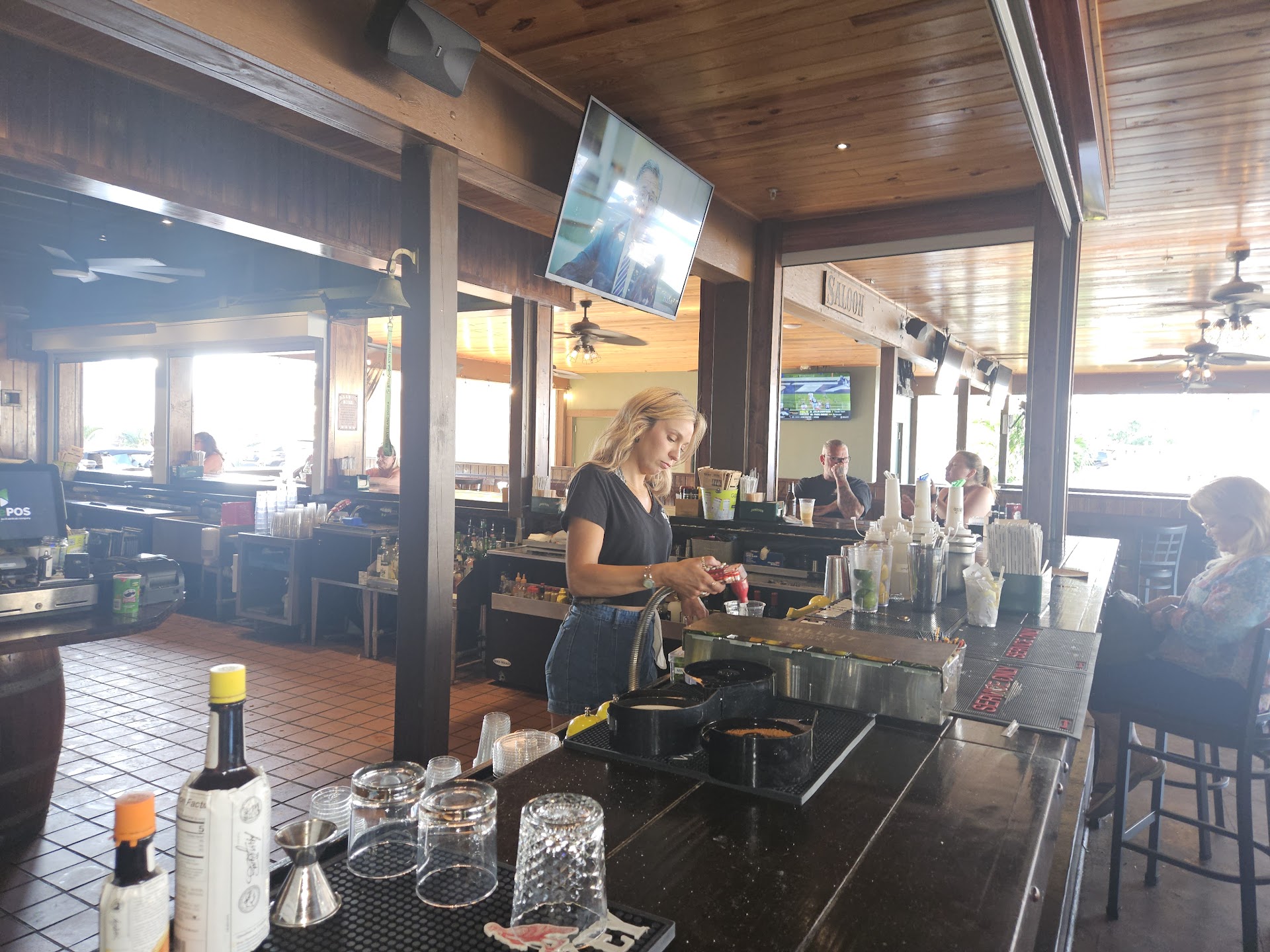 After delivering the food, Kyla disappeared again and at the 1 hour 14-minute mark--each torturous minute like a bastinado whipping with a cane on bare feet--I'd had enough. I went and got boxes from a not-unpleasant bartender for our food, paid, and left. This is another restaurant that should be in Cocoa Beach clipping tourists.