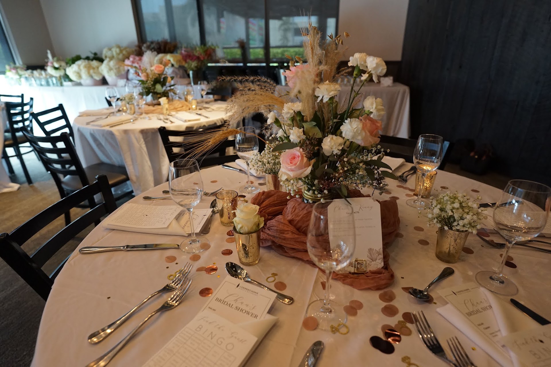I was in touch with Logan, the event manager, to book and plan my event in the Barrel room. I signed our contract in June 2021. Here are some things to note in the contract that you might not see unless you actually study it or ask questions like I did: Table linens are not included, napkins not included unless they’re black. These must be rented for an additional cost (at $13.50-16.5 per linen, $1 per napkin. Pro tip, you can buy linens for $9 or less at tableclothsfactory.com). Additionally, this is not stated in the contract, but I was told, only 2 weeks before the event, that we had a limit of 11 tables to use (and one long table = 2 square tables). This makes no sense since each round table seats 6 guests, at a max capacity of 42 you’d need 7 tables, leaving you with 2 long tables (4x2 square tables) for decor/gifts/favors. Not only that, we ended up bringing two of our own long tables, and the staff asked us to make space on it for them to hold their wine during our event. Not the wait staffs fault since they need space but poor planning on management side.