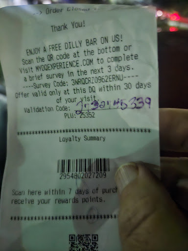 This evening on 10/12/25 @ 9:15:10pm There was 3 female workers behind counter tonight working at dairy queen! When I walked into the store one of the girls I seen with dark curly hair was rolling her eyes about me to another female worker which i ignored while speaking to my friend who was just involved in a very bad accident and was dealing with very tragic news! I observed one of the female workers making icecream for another worker/ manager in the back of restaurant?? There was 3 female workers 1 in the back office and 2 up front waiting on customers! There was 2 customers in front of me including a subway worker next door who they waited on and then proceeded to make me stand at the register for about 4 min twiddling my fingers while they continued to roll eyes and give attitude towards my direction for no reason? I don't understand why they could not ring up 1 last customer me then go and complete order so this way nobody feels singled out like I felt. I then fill out servey for a free DILLY BAR it reads in part ENJOY FREE DILLY BAR ON US! SCAN THE QR CODE AT THE BOTTOM TO COMPLETE A BRIEF SERVEY IN NEXT 3 DAYS. VALDATION CODE WITH A LONG LINE I RECIVED THE CODE OFF YOUR WEBSITE? THE MANGER/ WORKER STARTED YELLING AT ME YOUR DOING IT WRONG THAT IS NOT HOW ITS DONE? SHE WOULD NOT EVEN LOOK AT THE RECIPT TO VERIFY WHAT I WAS TALKING ABOUT? "SEE PHOTO ATTACHED BELOW" I then explain that i would call and speak to there corporate office about the issue and they just let disgruntled customer walk right out of store! Because I don't want them to make me upset then call the local police department on me claiming I was rude to them when I was not! They allso failed to have ice cream blizzard served upside down as advertised when serving ice cream to customers which they would allso not offer a FREE BLIZZARD to customer as...