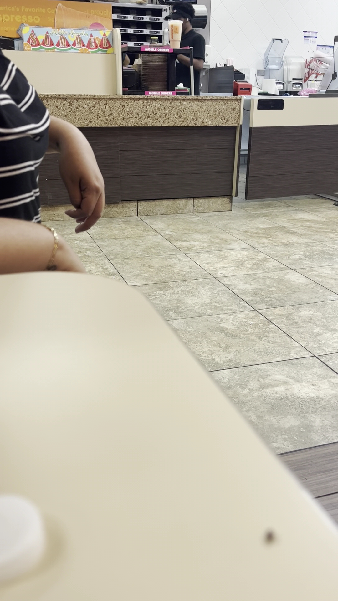 There was also a female customer behind me, and still no hand washing from Tyrone. I'm documenting this not only for myself but also for the other customer behind me--if she gets sick, it's because of Tyrone. If anyone gets sick it's because they don't care at that Dunkin'. If I get sick, it's due to negligence in them training your staff on proper food handling there will be h*ll to pay.
