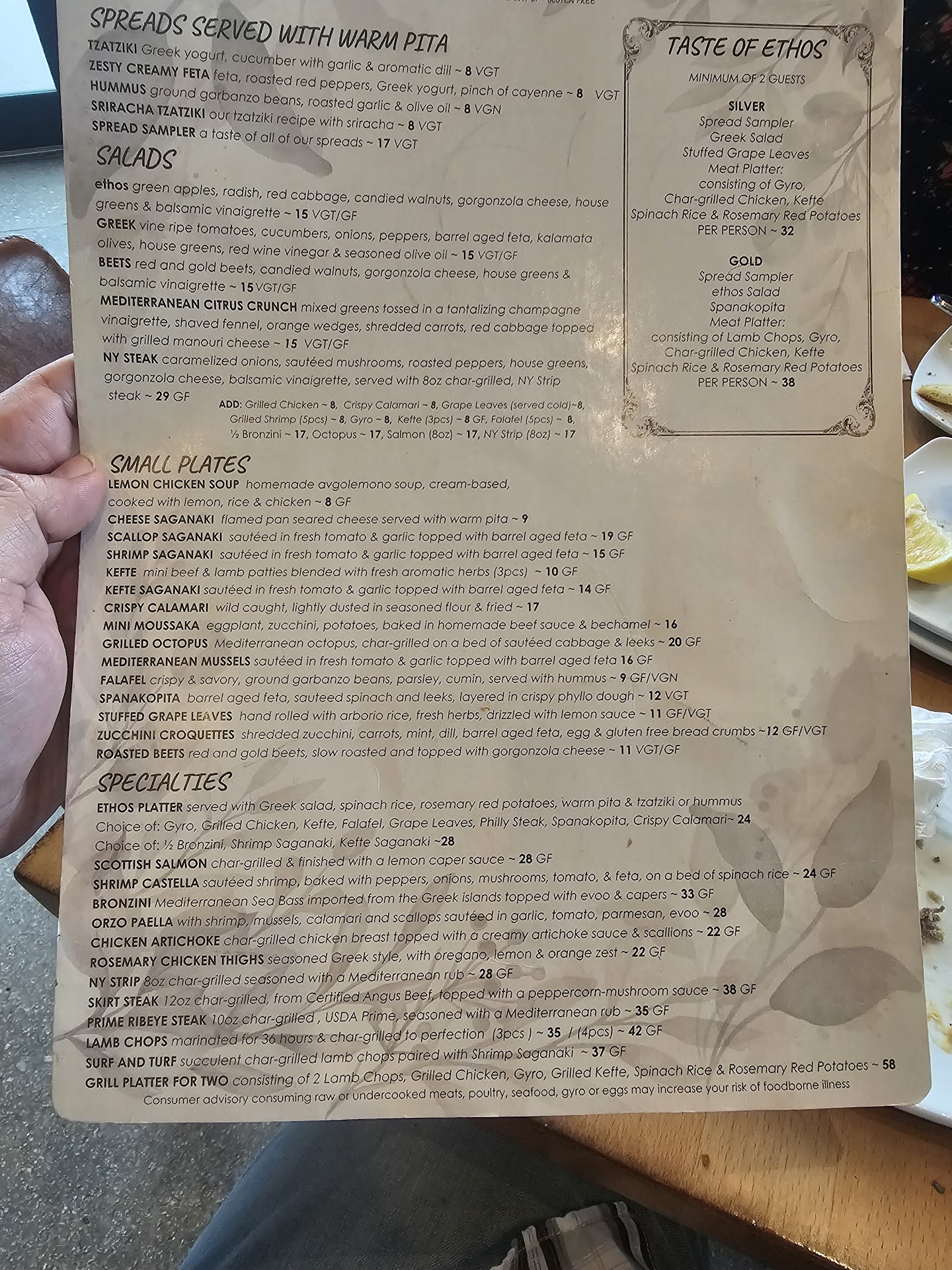 Read moreEthos is such a staple in our family. I haven’t been here for two years and coming back the quality of the food is the same! We also used a gift card that we had gotten as a date night gift for the holidays.