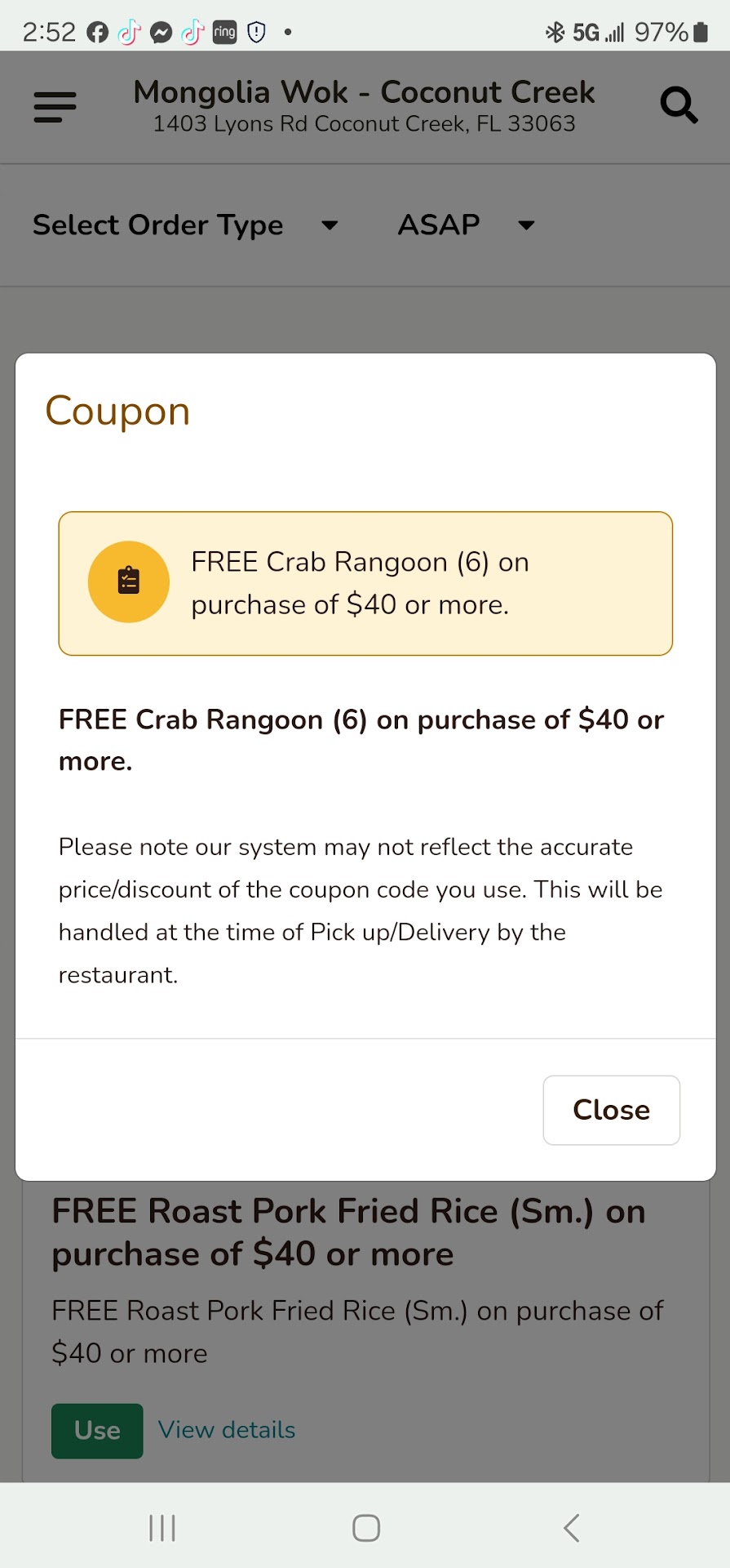 Read moreThis is a small restaurant. It primarily consists of an order counter and two small tables that are usually occupied by the people who work there. I usually end up here when it is late and I am pressed to grab a dinner. They are inexpensive and the food is always ready quickly. Sometimes the food is great and sometimes not so much. This past visit I ordered the cashew chicken, pork with vegetables, and sweet and sour chicken. All the meals came with fried rice, won ton soup, and an egg roll for $27 for all three meals. While I appreciate the price my daughter's sweet and sour chicken was so hard and rubber like that I felt bad giving it to her. They have also upped the amount of rice and decreased the meat and vegetables. My husband complained that he could barely find anything but rice in his meal. I am not ready to completely write them off yet but it is going to be awhile before...