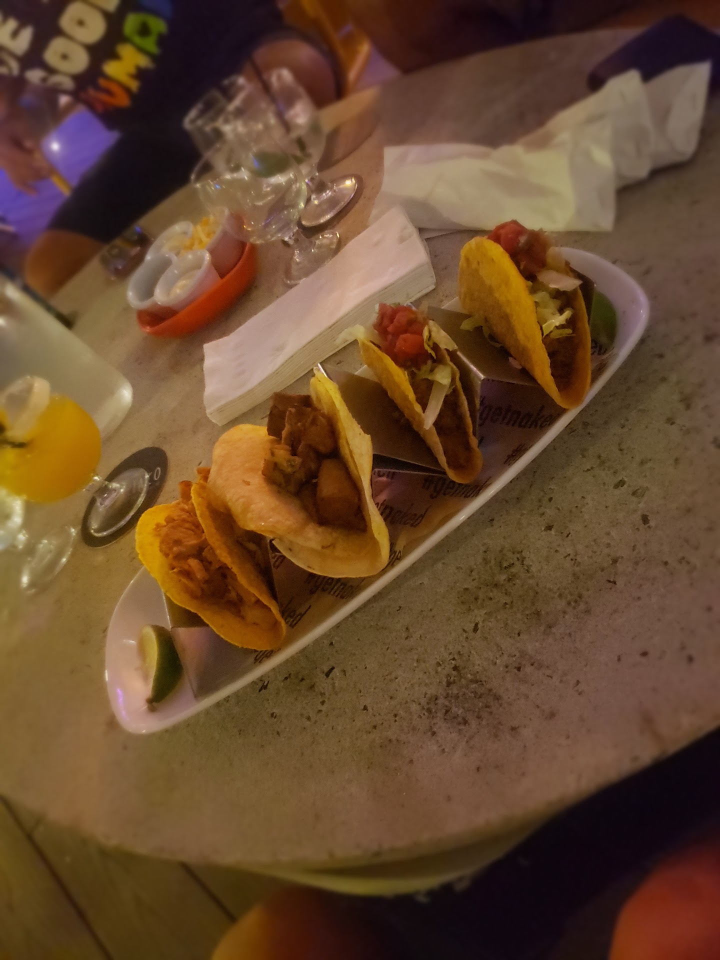 On a positive note, one young man who brought our food was polite and professional, and the trio of dips was enjoyable (though the queso tasted artificial). Unfortunately, the beef tacos — which could have been the highlight — were served at room temperature. The empanadas were fair at best and tasted as though they may have been made with canned chicken. Service was slow and inattentive; for example, we had to request additional chips twice before receiving them.