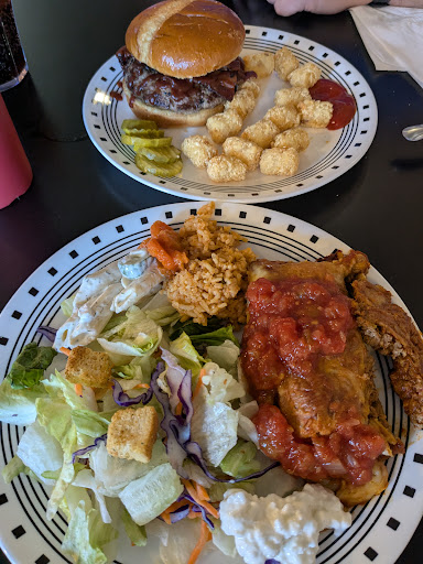Read moreI had the special: salad, pasta salad, beet root, cottage cheese, beef enchiladas for $12. Delicious! Hubby got the burger, half pounder, with shoulder bacon, BBQ sauce, onion rings, tots, root beer. Dessert was 2 homemade coconut cakes, 3 chocolate cookies. The bill was $38 with the tip. Friendly staff...