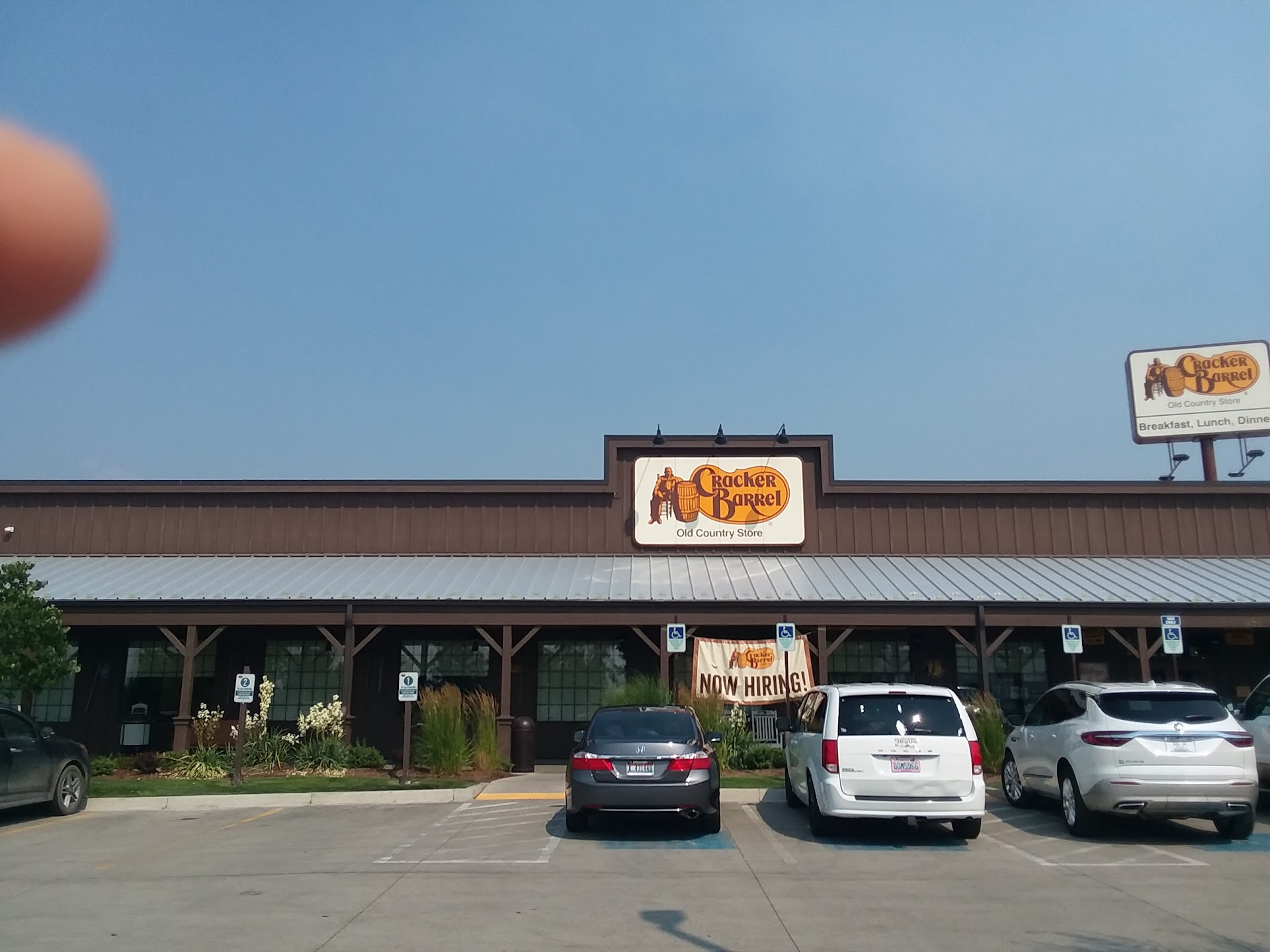 Read moreWhile driving by to go get breakfast somewhere else I noticed the familiar Cracker Barrel sign that I've seen so often in the Midwest. I quickly called an audible and flip this around and got breakfast here. This is the farthest west that I've seen a Cracker Barrel by a couple hundred miles, so it's pretty exciting to have it in Post Falls!