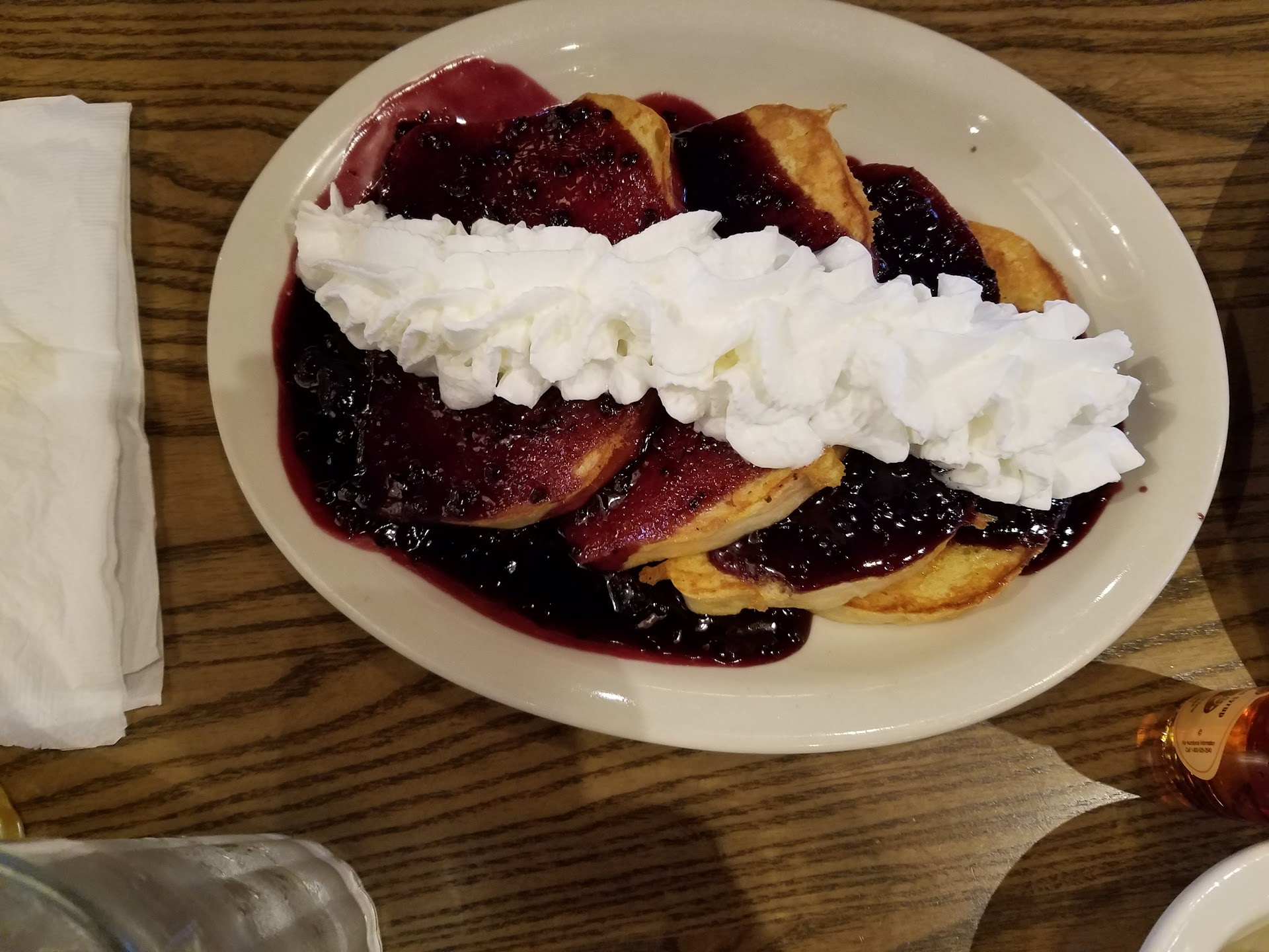 The fried dill pickles were so salty we couldn't eat them. The portion was extremely generous, but what good is that if you get hypertension from them? We informed our server about them and my eggs. She didn't try to fix the problem other than to get a manager. He came, was impatient as well, saying, "Does someone want to say something ?" I finally did. He took the pickles off the bill, but big deal. I was getting them for free. That's why we ordered them. He did bring me new eggs. They, too, were just as flat as a pancake and still had some sliminess. I just ate them so we could leave.