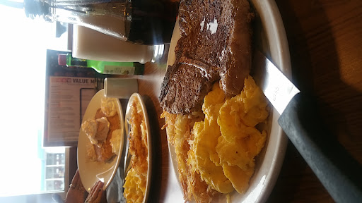 Read moreServer Shelley M. 8/16/24 - Order #340807 - 55+ Scr egg/ch. - mine had more cheese than egg, husbands missing bacon both were COLD. We arrived around 9:45 am. Shelly had no idea what she was doing.. After about 25 min or so I asked for cream and napkins, (stood up and had to find her) Shelley said âyou havenât got your food yetâ like she was surprised. Isnât she the one that served us? Wow.. She had to of let the food sit there, due to it being cold. When she finally got the food to us, only one pancake because she said the manager didnât like the way the other one looked. Had to serve my own coffee twice. Asked for to go cups, which we received. I ASKED Shelly to just fill them, so I wouldnât have to keep serving myself. She said sheâd fill them when we were ready to leave, I told her no, because weâd never see her again. She promised sheâd be back, never saw her again. I once again served my to go cup myself. Took my pancakes to cashier for a to go box and the bill. Cashier acted like this always happens. Wow! And I donât even want to talk about the cleanleness of the place. Had to wipe the silverware off, the rim of coffee cup made my napkin brown, I wouldnât even drink out of the water glass. The floor was so greasy I canât believe no one has slipped and fell. Wow, awful experience. The other older gal was fast and efficient. We watched her side of the restaurant as people after us came and left. Wow,...