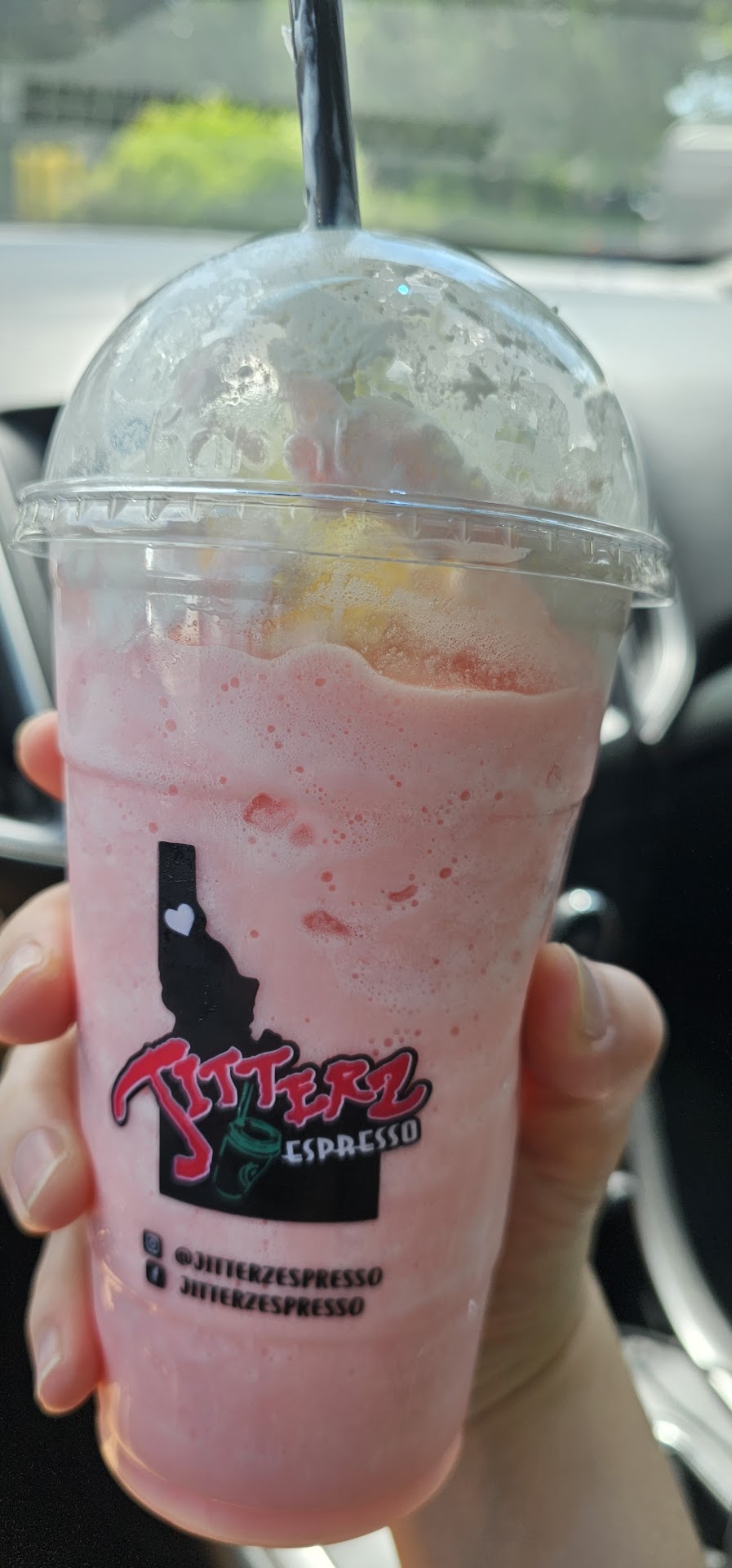 Read moreThis used to be one of the best places to get coffee.. since they now have numerous locations there service has declined... Doesn't matter what stand you go to all the girls pretty much act the same.. The pleasantview jitterz has some of the worst customer service ever and we buy 4-6 drinks each visit and tip very generously!! For example we came and ordered drinks the girl makes them and says sorry we're outta whip for today but then hands drinks to the ppl behind us looked like they had plenty of whip! The next day the line is out to the road after 30 mins in line we finally are 2 cars back from ordering a girl comes out goes to the cars that just pulled in took there order and walks right past me I waited another 10 mins I finally get to order the girl asks big or little straws I said big straws please she then takes 2 little straws sticks them into my drink licks them off and throws them away then grabs a big straw and hand me my drink!! I don't care who you are that's nasty!!! Me thinking maybe there just busy that day or maybe it was a bad day but no it's literally everyday every time we've gone here and it takes buying 13 coffees to get a free one good luck...