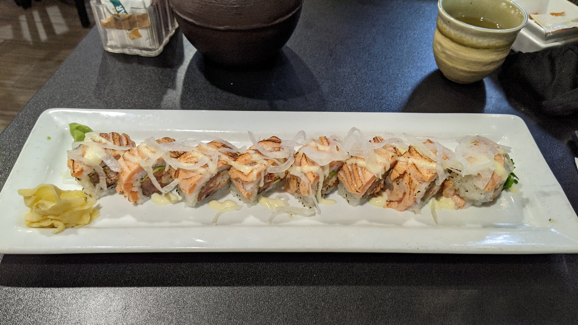 Read moreI would like to see this place improve with service and food presentation. I don't recommend sitting at the bar for dinner on a Saturday night because the bartender will get busy and will just not be able to get to you when you need something. That's just the situation. Staff were nice enough but maybe they were down a person or two. I hope that's it. The servers were very busy and it was hard to relax with them rushing around acting so frantic and hurried. And we had to interrupt them at their kiosk to get soy sauce, wasabi and ginger and that was a bit awkward and slow but they were nice enough finally.