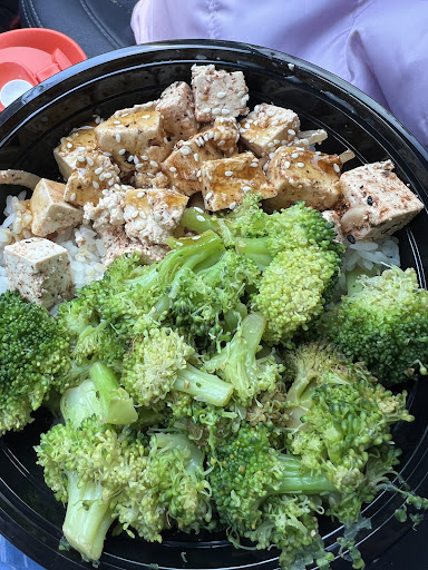 You basically just choose the protein: Tri-tip, Poké, Teriyaki Chicken, Tofu, etc. Each of these protein options has their own appropriate toppings (example, Poké has Japanese garnish/topiings). Then, you choose whether you want rice, spring mix greens, or a hybrid of both for your “base” (their terminology).