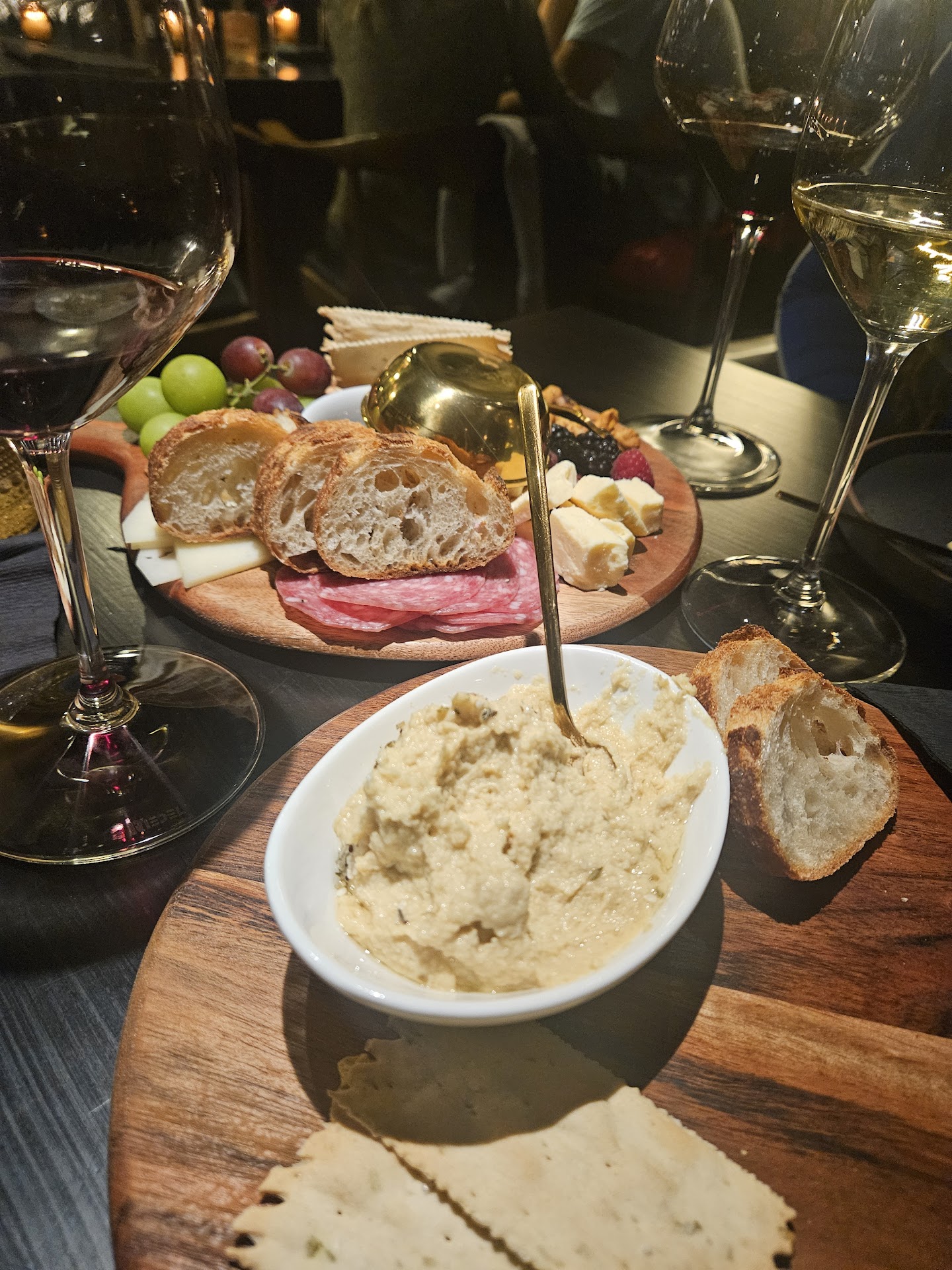 We sat at the bar and met the owners, Sam and Anna. Sam was knowledgeable and made spot-on recommendations—he even convinced me to try an Argentine Malbec, and I loved it! We ordered the whipped feta (yum) and a charcuterie board. When Anna heard I was a vegetarian, she was kind enough to ensure the meat was kept separate from the cheese—such thoughtful customer service.
