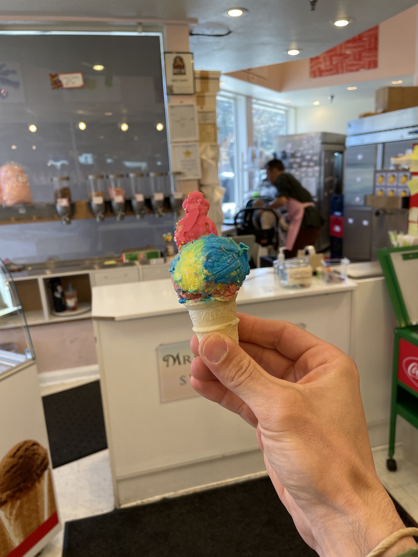 Read moreThis evening we wandered in while exploring and the sweetest Cashier Devan was working, he was very attentive and helped us pick out treats! Thanks to him I tried rock candy for the first time which I am currently enjoying very much! He also took his time to help us pick out fun sodas to bring home! Lovely conversation, best experience I’ve ever had at a candy store! I highly recommend coming here to anyone exploring the Coeur D’ Lane area. Also their candy is very affordable so if you have little ones you can get them a treat for less than 5 dollars or get their ice cream which is...