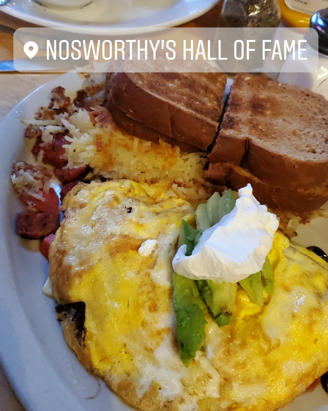Well, I hate to say it but eating at Nosworthy's Hall Of Fame was such a disappointment. My wife and I went there to eat for the first time because we had heard good things about it. We each got their 1/2 pound burgers and fries. Here are our thoughts: