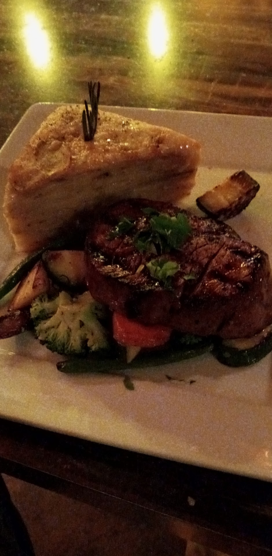 Cons: We were there well over an hour before the entrees were served. The kitchen timing was off for our table and the filet mignon was over cooked, cool, and dry. The other guests food was also cold, a bit flavorless, and dry.