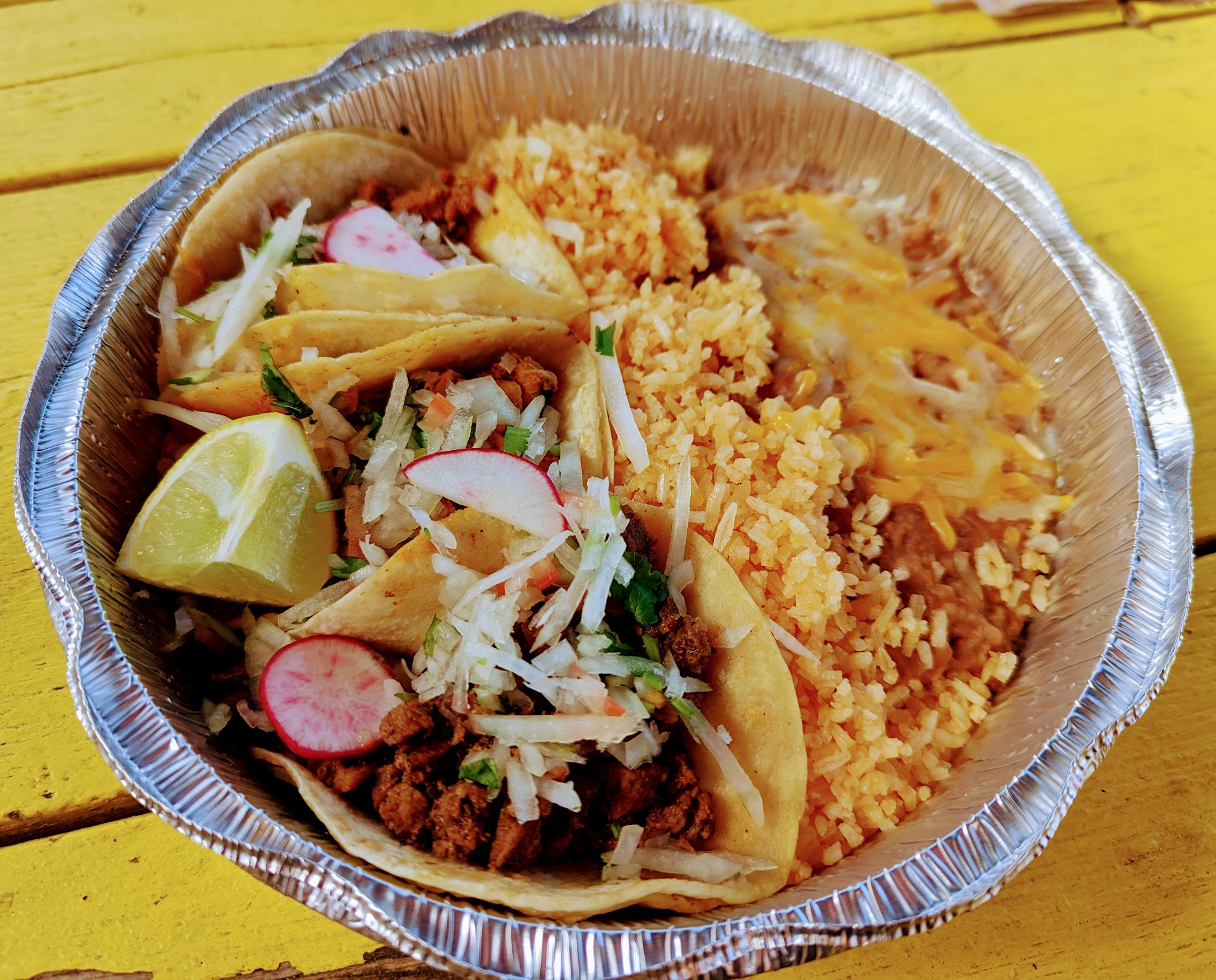 The best tacos in CDA. This place reignited my love of tacos. $3 for two tacos, it's an average price, but the flavor I'm eating makes me feel like I won a jackpot. There are lots of colors on their tacos- all the usual fixins, but the tomatoes and radish are a nice touch (very nice-in my best borat voice). I love spicy stuff so I tried their hot sauce...I cried the whole time I ate it, but I finished them either way; milk afterward was necessary. I really cant say enough how freaking much I love this place. I'm thinking about going there now, but I was in yesterday and really just don't want them to think I have a problem..it's really not a problem, I just eat there recreationally. Don't judge me. Also, the person that gave them 2 stars probably owns a...