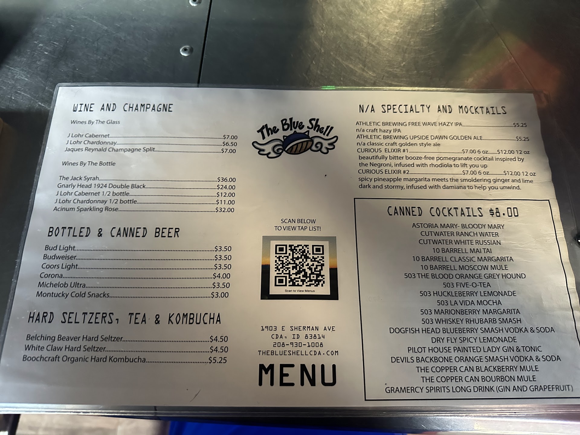 The beer and drink selection is great, and their namesake âblue shellâ cocktail is one of my favorites in the area and worth coming for all on its own.