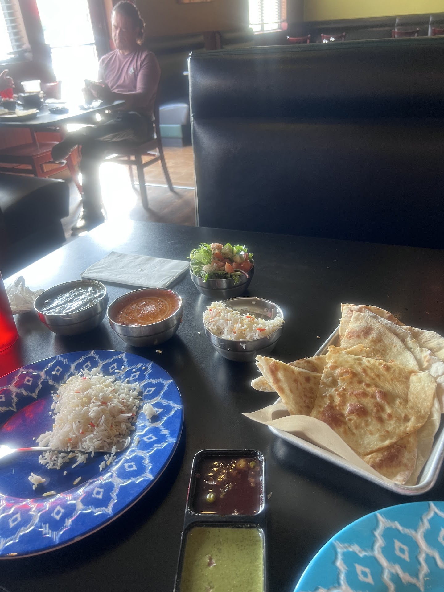 Read moreArrived at restaurant, waited to be seated 10 minutes or so. Waiter walked by 2 times and said “I’ll be right with you”. Then about 2 minutes before we were seated another couple came in behind us, the waiter came and grabbed all 4 of us. Seated us in two different seatings. Then took their order first, served them water and then we waited another 15 or so minutes before another waiter came and took our order. Ironic the mango tree was out of mango lassi. The server got our order. While waiting we noticed the restaurant is VERY smoky, our eyes were on fire the entire time and having asthma it’s not easy to breathe in this environment. But we sat it out. We got our food, my fiance ordered tiki masala and I the lamb plate. Right off the bat I noticed more than half of my garden salad was entirely white onion.. when I pointed that out to the waiter, he’s like “oh darn if I had know you didn’t like onions I wouldn’t of added so many”. I’m just thinking garden salad generally doesn’t have onions in it, and if anything sweet onions. Then I noticed my rice was clumpy and cold, whilst my fiancés was hot and fresh. I also never received a knife to cut my lamb off the bone. Obviously I’m not gonna be a pig with a very glazed lamb and eat with my hands. But the server never came back only to drop the check off, so I didn’t get a chance to even try the lamb or eat the cold rice. I did in fact enjoy the couple pieces of green leaf lettuce with the yummy ranch after I picked ALL the onions off. My fiance was a sweetie and I gotta say, order the tiki masala or butter chicken above anything over this, although if you like good NAAN, this isn’t the place for it! If I ever acted the way the staff acts here at my job, I wouldn’t have a job. Hope everyone else has better...