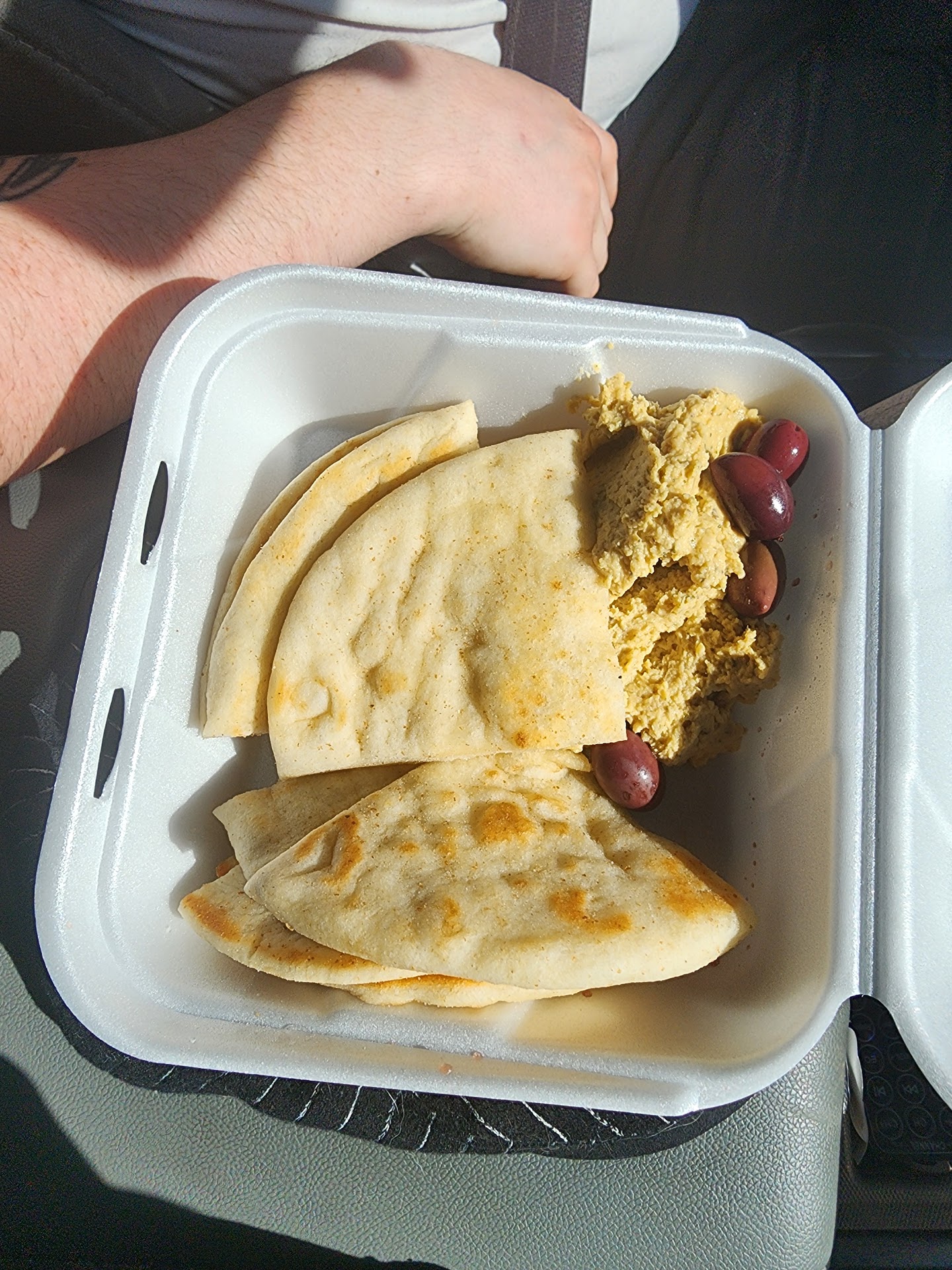 And then there’s the presentation, or should I say the complete lack of it? Even for a to-go order, I expected a bit of effort. But no, it was a sad, sloppy heap with zero care. Oh, and olive oil? Forget it. Not even a tiny drizzle to help wash down that hummus cement.