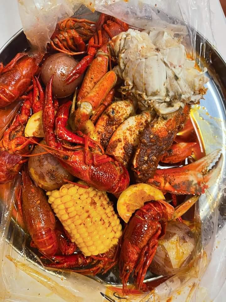 Food: First time back in March (pictured), I ordered the dungeness crab and crawfish with non-spicy, all mixed flavor. Tasted amazing. The other visits I've gotten shrimp, butterfly shrimp, and the fried catfish basket, all of which I'd get again. My friend has tried the same but with the garlic butter old bay flavor and that is great, as well. Quality of the food has always been good. Crabs very meaty. Comes with corn and potatoes and zero complaints. Drinkwise, I've stuck to Pepsi or water with a lemon. Nothing fancy, but hits the spot just right. Looking forward to trying out more on the menu soon. Also, the little hard candies they have at the front desk, try one. I forgot the flavor (not mint), but really good on the way out.