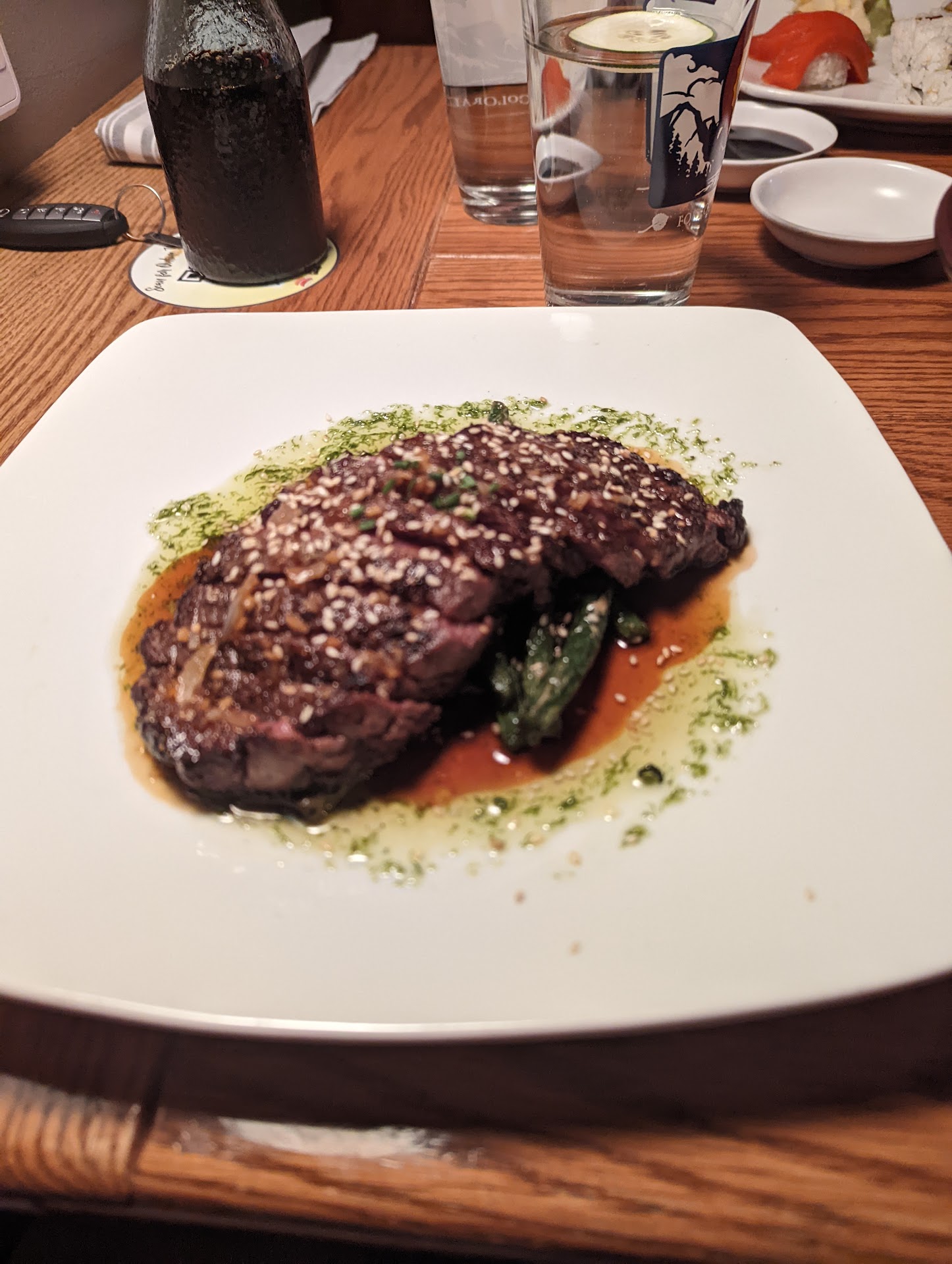 I'm a big believer in sushi being simple and just flat out good. Simple ingredients put together in a way you can appreciate the flavors you experience. Based on this theory, it is understandable to use the most common roll; and the basis of many more complex and expensive rolls, be my measure. The California roll. In addition to the snow crab issue, the masago that was in the roll was so slight, it was not able to be tasted. That slight pop I was expecting was not there. I understand that not everybody enjoys this ingredient and you can put too much, but either use it and have the taste or exclude it and have the customer request it added. Not so little you cant detect. And last but not least, there was a massive amount of rice on the outside compared to volume of ingredients.
