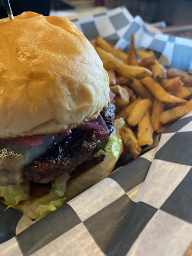 Name of restaurant: Spanked Puppy Date: 1/10/21 General time: 2pm Town: Colchester, VT Name of burger: Steakhouse Burger Side included?: yes, fries Price: about $12 Temp order & temp received: medium rare, got medium rare Patty thickness: Thick patty burger, average, 1/2 pound burger Number of patties: 1 Bun stability throughout: Decent Type of cheese: Cheddar Level of cheesiness: 1 slice Condiments: Pickled Red Onion Sauces: Chipotle...