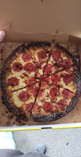 The pizzas was tough like maybe it had been sitting a long time and cooked to the point of tasting burnt in some places. To say the toppings were skimpy is an understatement.