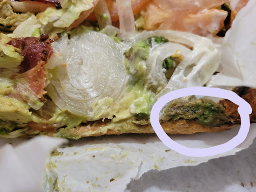 Read moreThis place is a JOKE!!! Decided to try this place since the advertising showed more meat and all that. Well I ordered the BLTA and wow, 5 pieces of half burnt/half under cooked bacon, frozen onions and the kicker..."fresh sliced avocado" was maybe a teaspoon of brown mush. I ordered it to go and went with my daughter not even 4 mins down the road. When I tried to take it back, they told me there was nothing they could do because I left. I was literally gone less than 10 mins. Not enough time for "fresh sliced avocado" to turn into brown mush. You can see the pictures I took. No bacon and brown mush. The girls there acted like they could just not be bothered. I even told them when we first walked in that it was our first time there. We were ignored the first 5 minuets we stood waiting to order. We were actually walking back to the door when they stopped us. Only reason I stayed was because my daughter really wanted to try it. Not worth it. Ill never go back and I will make sure I let other people know not to go. Terrible food and even worse...