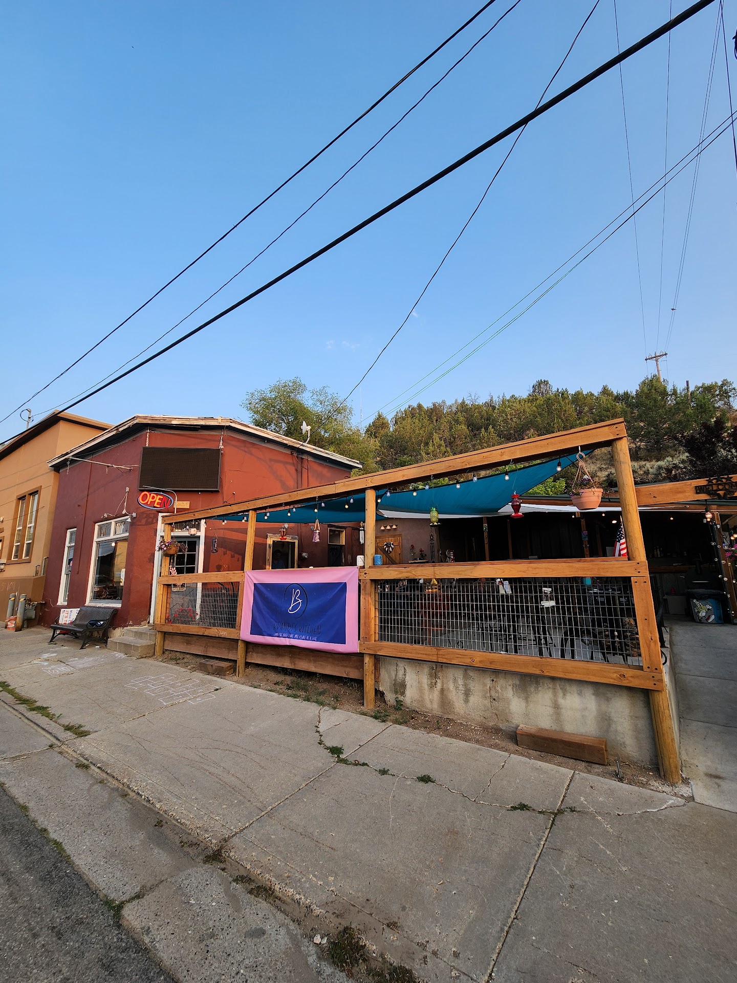 We were staying in Collbran for a few days and we went into town to grab a bite! Very chill and relaxing spot, nice to be there in the heart of Collbran. I love the small town vibes. They have a nice patio and inside area. We had a view of humming birds zooming in and out. Brandi was very kind and funny! She ran the whole place, taking our orders and preparing the food. The food was very tasty, everyone devoured their plates. As a vegetarian I was able to get an impossible burger with potatoes. The Mac and cheese is really good too! Great spot to check out if you come to visit ! Maybe one day we...