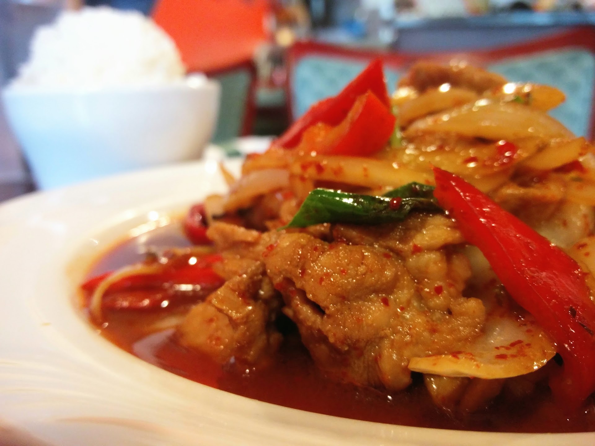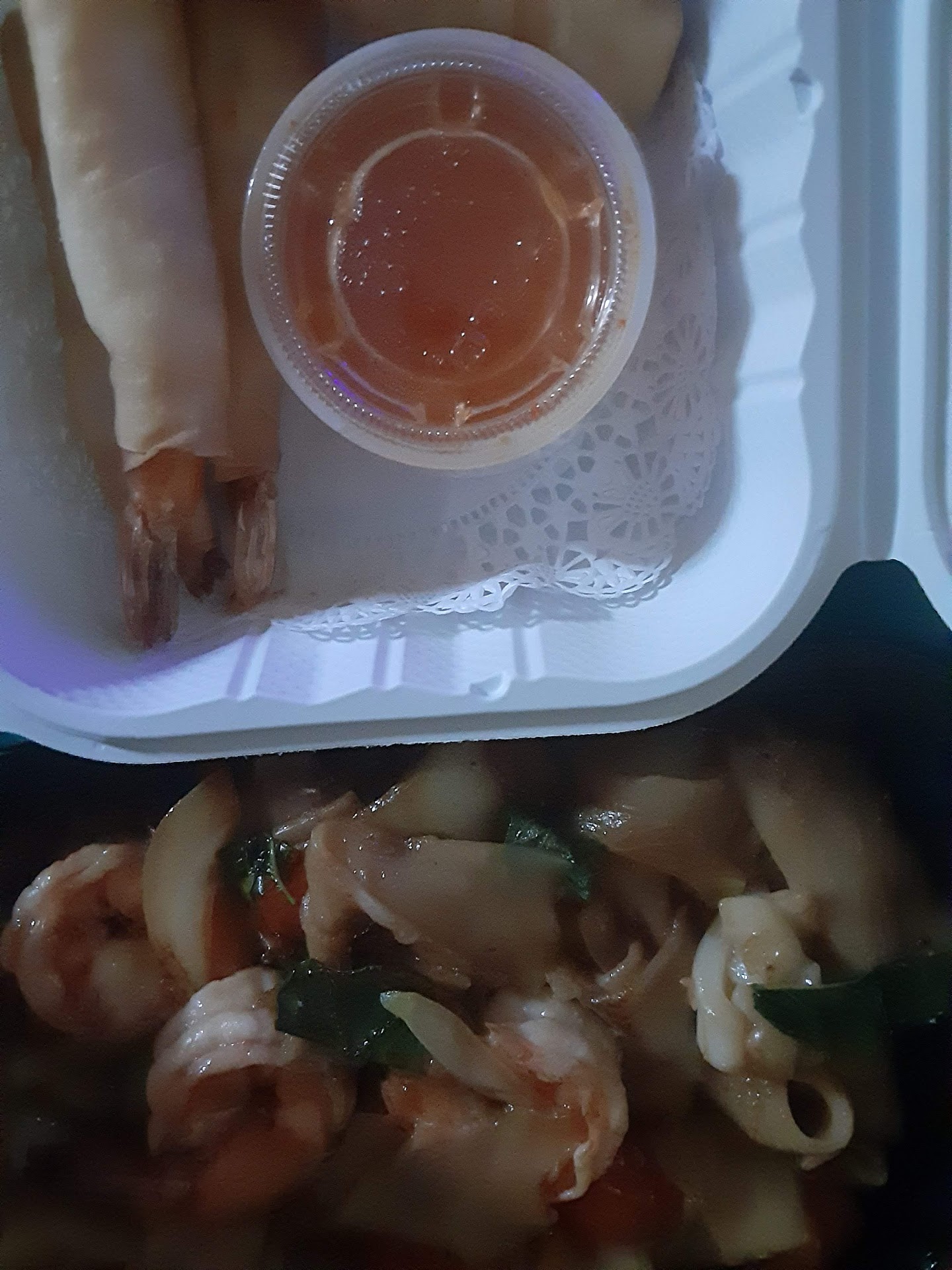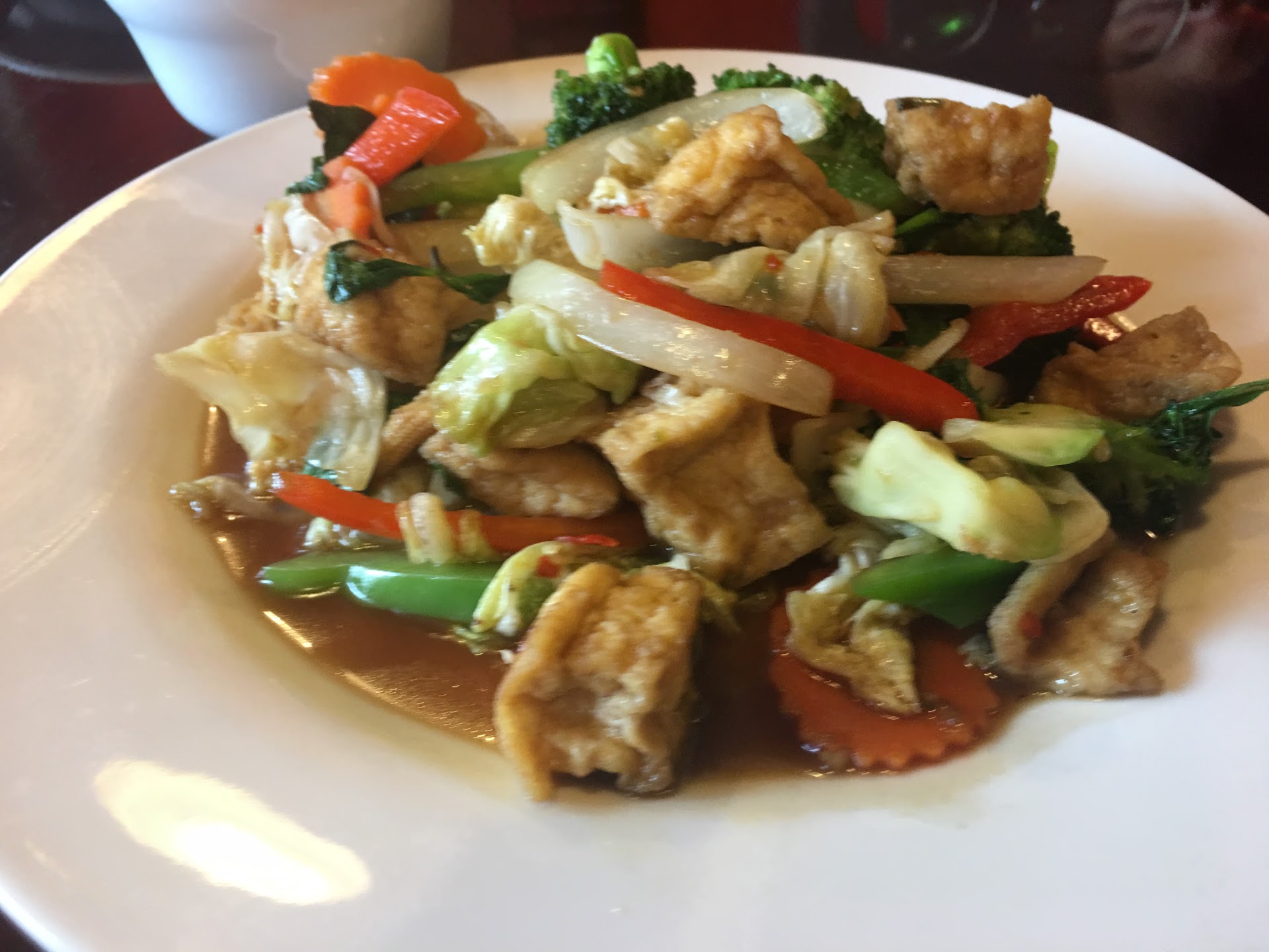 We were visiting someone at UMD & decided to take him out for some Thai so came here. The spot looked decent from outside so we parked & went inside but were told that it's "self-service" only and they pack orders as takeout only (i.e. takeout containers, etc). We didn't mind it so proceeded with our orders, etc. Unfortunately, we had a child with us and once food came out, we requested paper plates (assuming that was normal) but were told they didn't have them (obviously, this was after I'd already paid/tipped 😔). In any case, we had to use the lids of our containers which was not fun with our kid. This may have been one of those few Thai restaurant visits where i was dismayed by the demeanor of their main staffer (i usually don't mind small issues if food is good but, yeah, the demeanor was a deal breaker in this case so we cannot recommend this place on account of it). In conclusion, good food but it's not worth the experience (especially eat-in) and don't be surprised if you don't get any plates for takeout either.