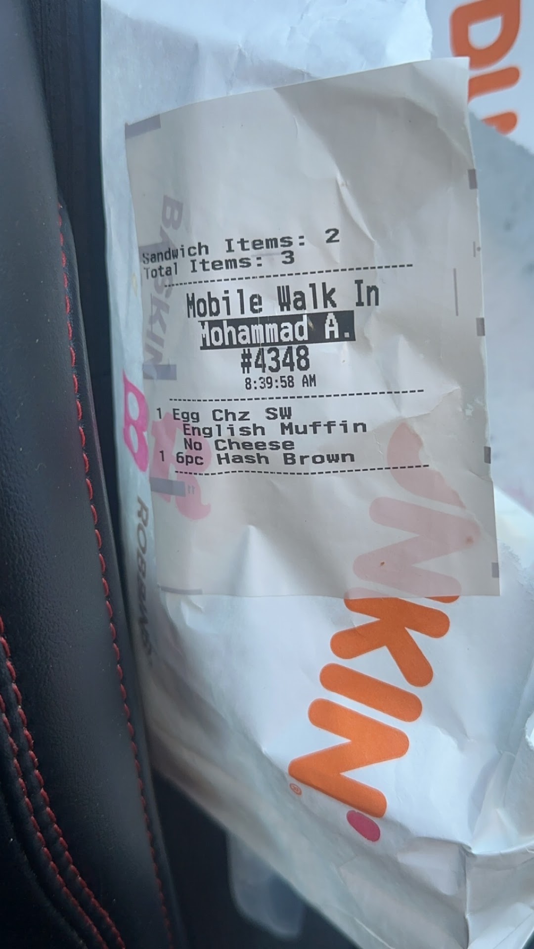 Most times when you get bacon on a sandwich, the employees will just throw the bacon on without separating it so some bites youāre chomping through 3 pcs of bacon all folded in half and others you get none at all because you ripped it all out with your first bite. This young man took the time to separate the bacon, made sure the cheese was roughly centered and not half off and folded around the sandwich. Overall the food was great, coffee and tea were average at best - not entirely his fault, kinda losing interest in Dunkinās coffee as of late.