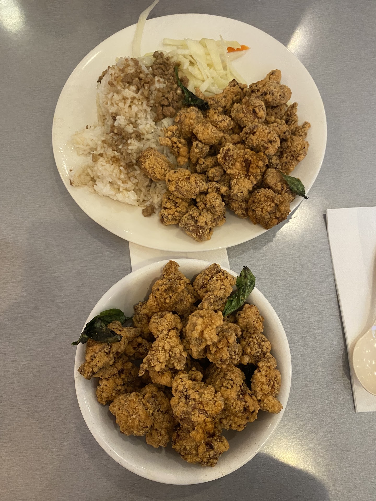 Read moreThis ostensibly Taiwanese eatery is located on the ground floor of a new apartment building with the only designated parking inside the rear of the building which is difficult to notice as you drive by. The menu boards above the walk-up order counter did not include prices and our attention was directed to some soiled paper take out menus. The hot food arrived quickly. I had the crispy asian chicken and pork on rice. The heavily battered fried chicken breast was sliced into wide strips and had a unique taste. However, the very plain white rice and cabbage was topped with a stingy sprinkling of pork crumbs. My wife had vegetable low mein which she enjoyed. But everytime the front door was opened our napkins were blown off our wall side table. We made the mistake of deciding to try a dessert based on an interesting poster. We received a gigantic bowl with a huge mountain of roughly crushed ice topped with some kind of small sugary red beans and because they didn't have the condensed milk as depicted, we settled for a sugar syrup. It was absolutely horrid and inedible. I don't think the viscous milk drizzle would of made any difference. This is not a serious dining establishment. It's a carry-out for nearby UMD students on foot and probably staffed by same. Just don't order...