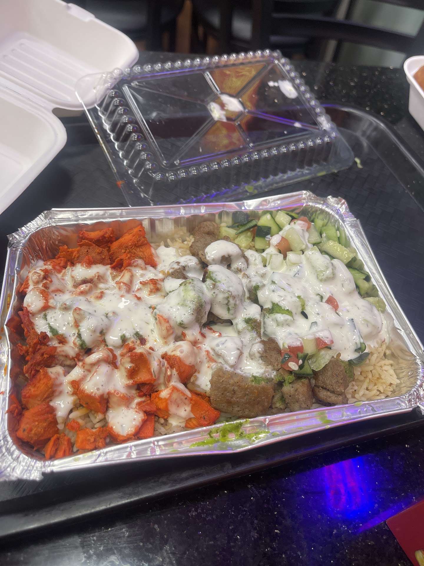 I also tried the combo platter featuring chicken, gyro, rice, and salad. While the flavors were good and the ingredients were fresh, the portion sizes left something to be desired. The fish strips didnât fare any better; they were dry and lacked meat, and a side of tartar sauce might have saved the dish.