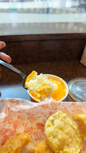 TLDR: Late breakfast at Popeyes airport location delivered speed but not satisfaction. Dry chicken, brick-like grits, and forgettable service made for a lackluster start to the day. The biscuit was the only redeeming bite. Would revisit earlier in hopes of fresher fareābut expectations will...