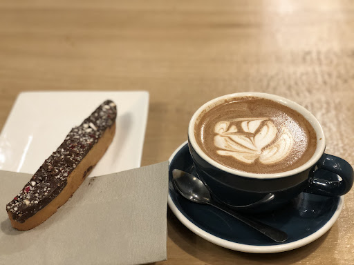 Read moreI have come here few times. I love the local coffee in the ceramic mugs here. My choice is mocha or vanilla latte. We do recommend the mint chocolate biscotti, goes well with the coffee. The barista are really helpful and nice people. They had good number of vegan alternatives for milk in the coffee. Secret there is, it doesn't change the good coffee taste. Try it, might help the environment one coffee at a time. The ambiance was nice, soulful and peaceful in the late evening. It gave us nice thoughts and made us craft beautiful food for thoughts and conversations. We even wrote some down our memory lane. Amazed by my newly found experiences at this coffee place, it has moved high in the list of my to go local coffee places to fancy my fantasies.