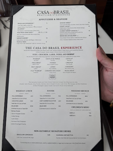 Read moreNice facility. Beautiful outdoor seating. If you order off the menu, as opposed to the "Brazilian experience" expect to get something other than your order and expect it to be slow coming. After delivering the wrong steak, the waiter & manager, assured me "7 minutes. Tops!" It took another 30 minutes. 1 hour from initial order to delivery. We had just decided to leave. Not as much for the delay, but because the atmosphere changed. Kids running around, kids with bouncing balls, and one little kid who kept coming up to the table and coughing at people. He would look at you and cough at you. Parents, if you take your kids to a nice place, don't let them act like animals. For the price of my meal at this class of restaurant, I expect nice dining and food delivered within a reasonable time -- especially, when you tell me to expect it in less than 10 minutes. And, they were not that busy for a Saturday evening. Most of the crowd was gone by the time we ate. Food was OK. I got a doggy bag.