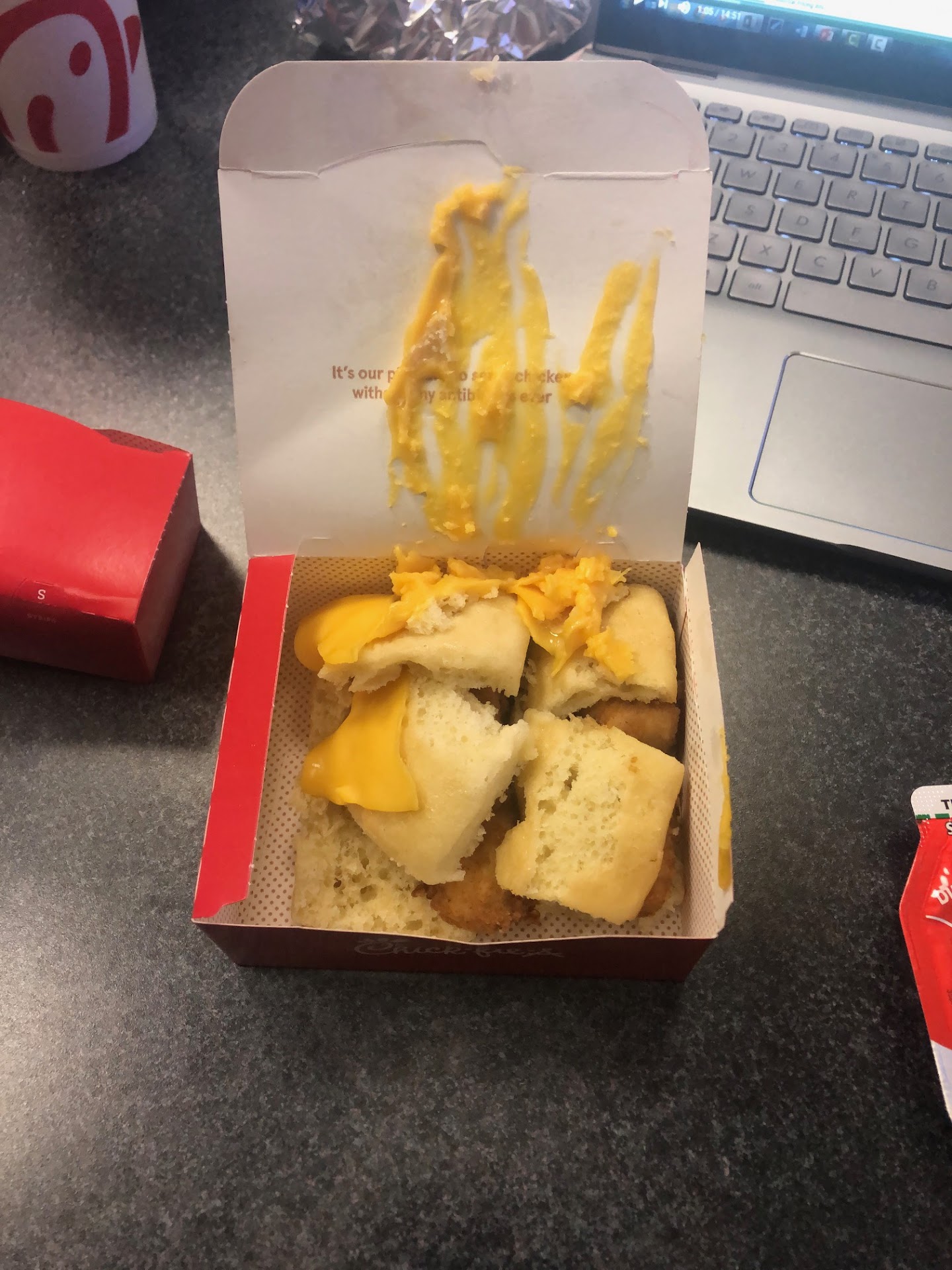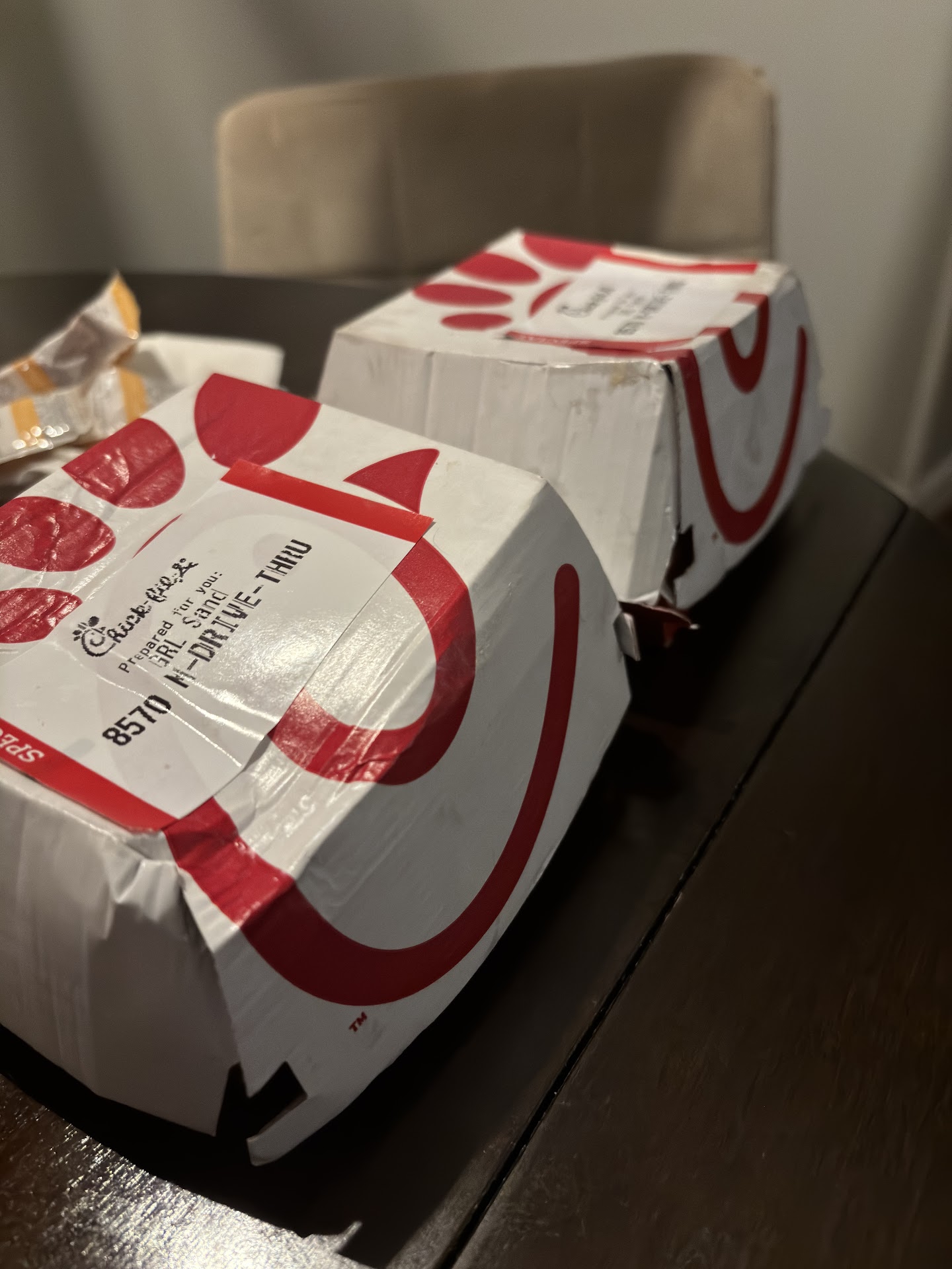 The worst part was having to sit in the drive thru line again all because they forgot to check if my order was correct. See the photo for a picture of my soggy boxes by the time I got home. Easily the worst chick fil a I’ve visited. It seems like the crew just ignored my order and managed to get it wrong. Crazy, because CFA service overall is usually way better than other places....