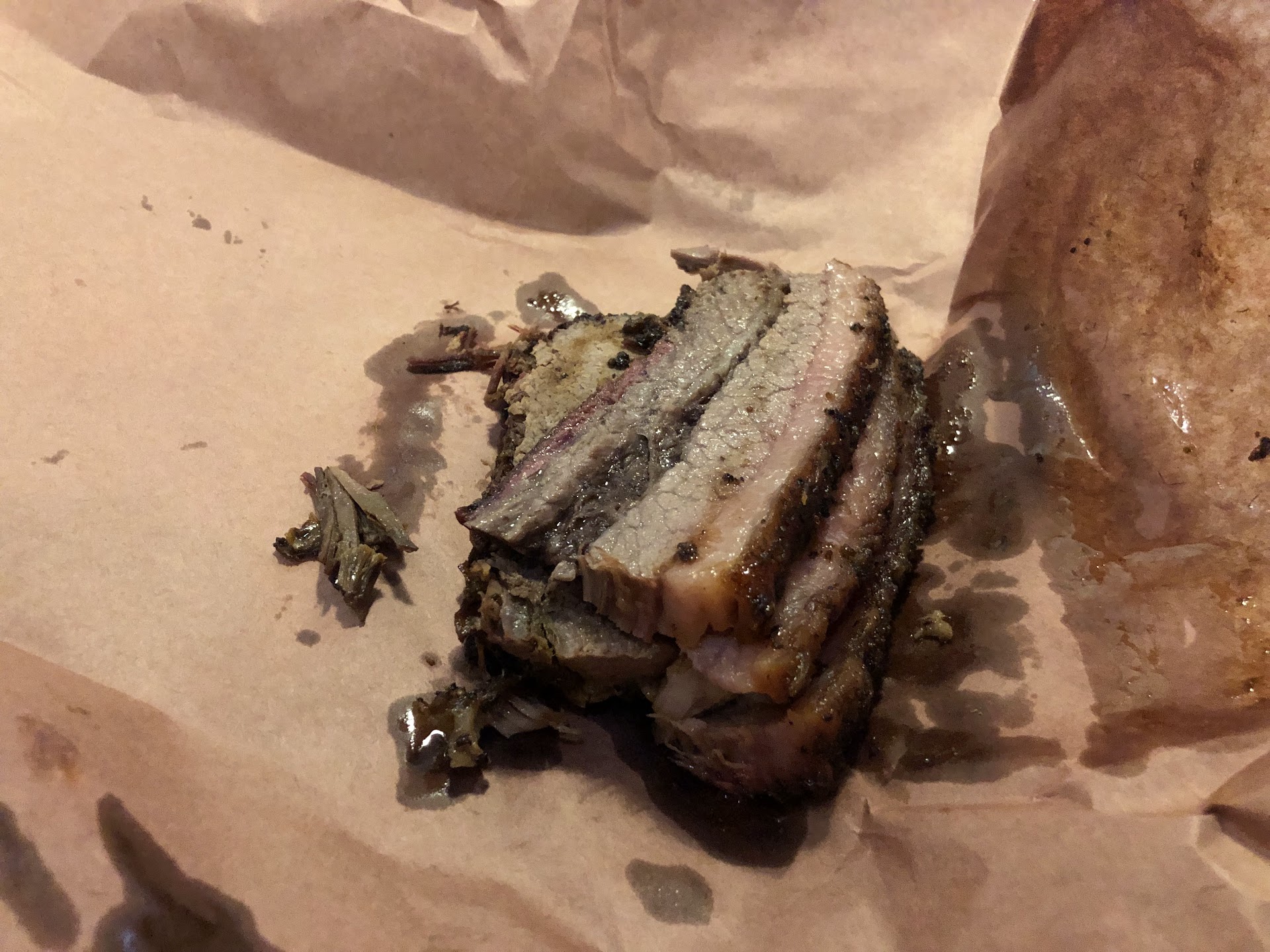 The brisket (2/3 lean-cut and 1/3 marbled) of my order of was not as advertised either. See fat that I trimmed off in the attached photo. I would estimate 1/4 of the weight for which I was charged, was inedible fat!! The baked potato was small...definitely not the Demeris Bar-B-Q or Pappas Bar-B-Q sized used to getting in Houston! ...more like what you might get at Wendy"s!