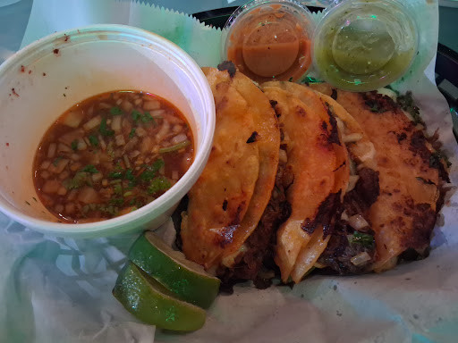 Read moreThe asada tacos were amazing and generously filled. I will always go here for some tacos! They're very affordable as well, thank you for that. I only wish I had gotten more cilantro and green salsa! Both the red and green are delicious and i rarely use red. We only got one green and one red for 5 tacos and 2 quesadillas, make sure to ask for more. The quesadillas are expensive and we only got cheese, no meat. We were very kindly given a ground beef and potato empanada that was also very good and was...