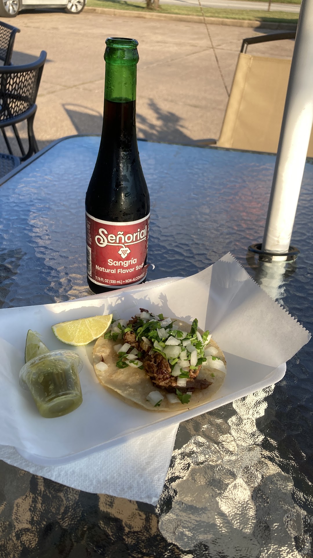 Read moreI love this place. It’s a food trailer at a car wash. My premium street taco for $3 was just what I needed for a light supper. The Senorial sangria-flavored non-alcoholic soda was cold, sparkling and delicious for $4. Mexican music in the background, three tables with umbrellas in the parking lot provides an atmosphere that as casual and relaxed as can be.