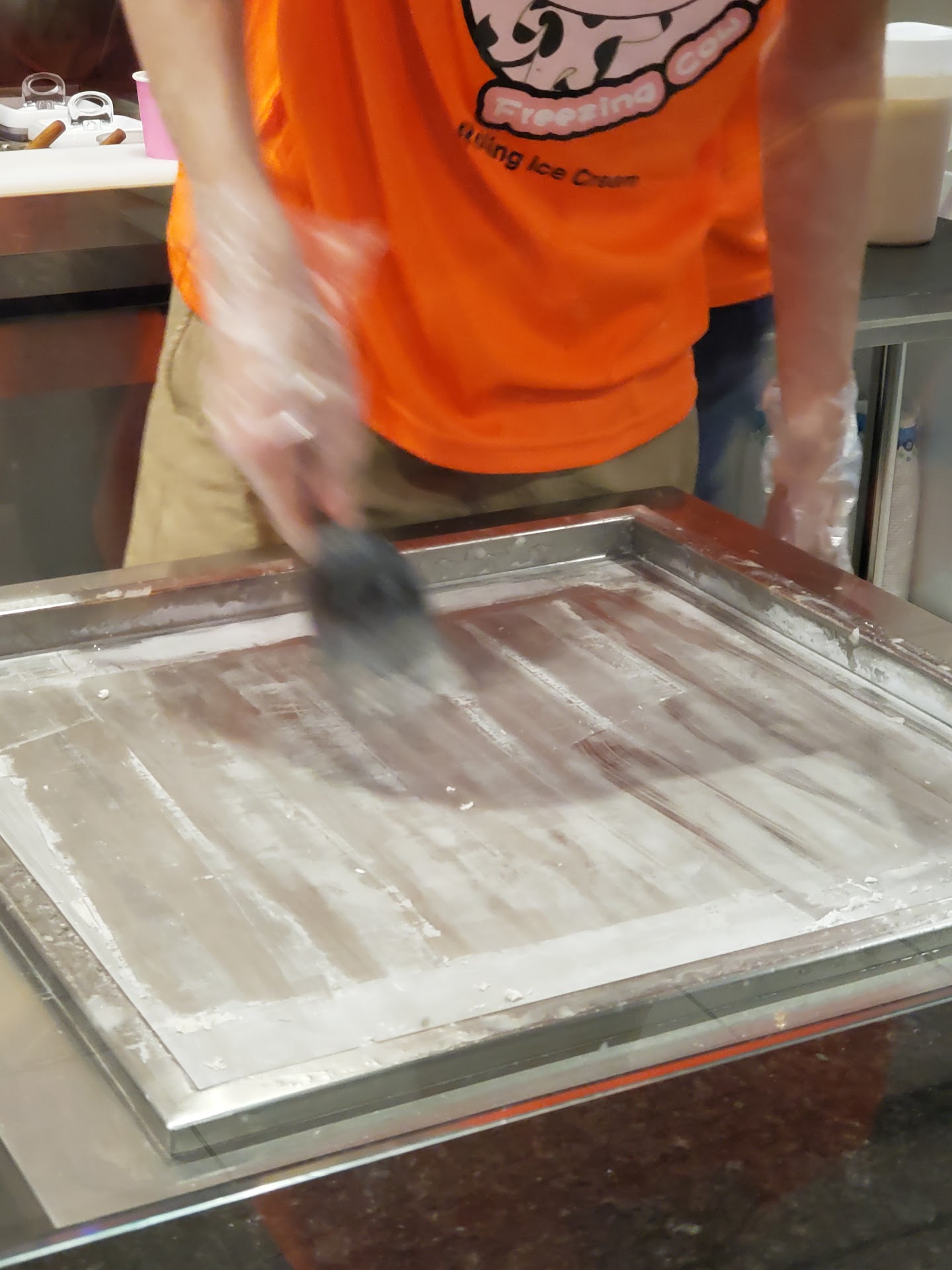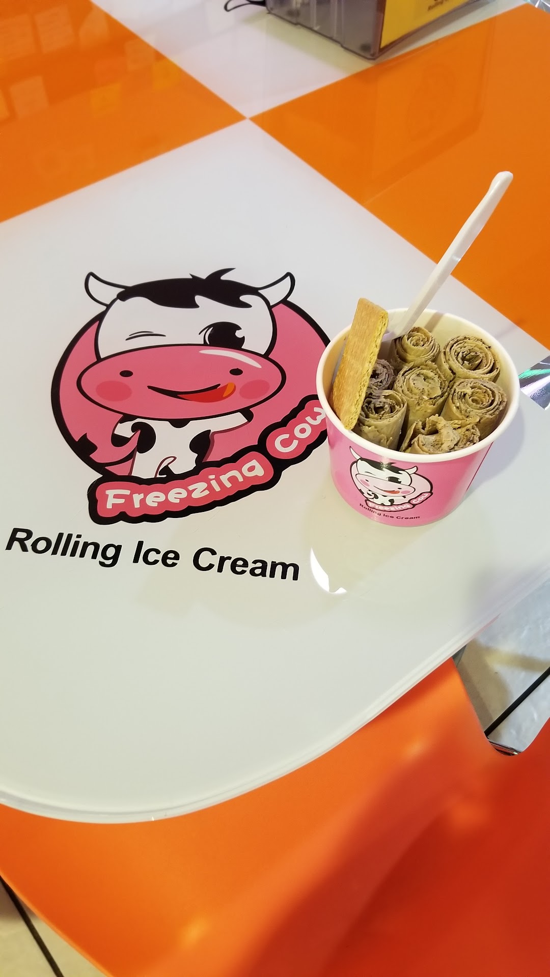 Read moreSaw this on one of the best dessert places to and decided to give it a try. One word to describe- YuuuuMmmm!. You choose your flavors and you get 2 toppings. I chose the #6 with brownie pieces. Its really neat how they prepare your order. They have this freezing cold stainless steel looking flat top and they pour your flavor on and just start constantly "mixing" your ice cream all around. If you have a fruit like strawberry, then they put fresh strawberries on it and chop it up like an onion inside the ice cream which gives the flavor a very authentic taste. There is a glass window that allows you to see the special skills that go into placong your order. The way they smooth out the ice cream into a very thin layer and then roll it up into individual rolls is so neat! Then they take each roll and place it right side up in the cup and add your choice of toppings. Everything from the flavor to the toppings is mouth watering. Love it! Better...