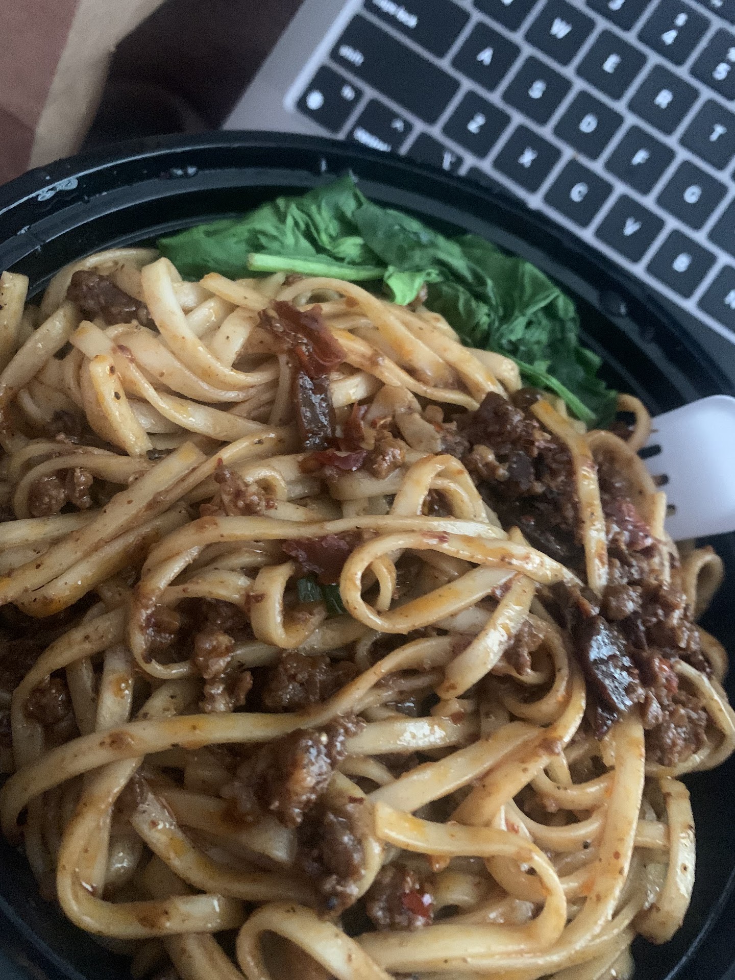 +The Biang-biang noodles - were cooked well, BUT drenched in pretty tasteless oil. I would suggest investing in a better chilli oil. We were warned that it would be very very very spicy but it was very underwhelming and tasted like subpar chilli oil. We had chicken with it but that was also dry.
