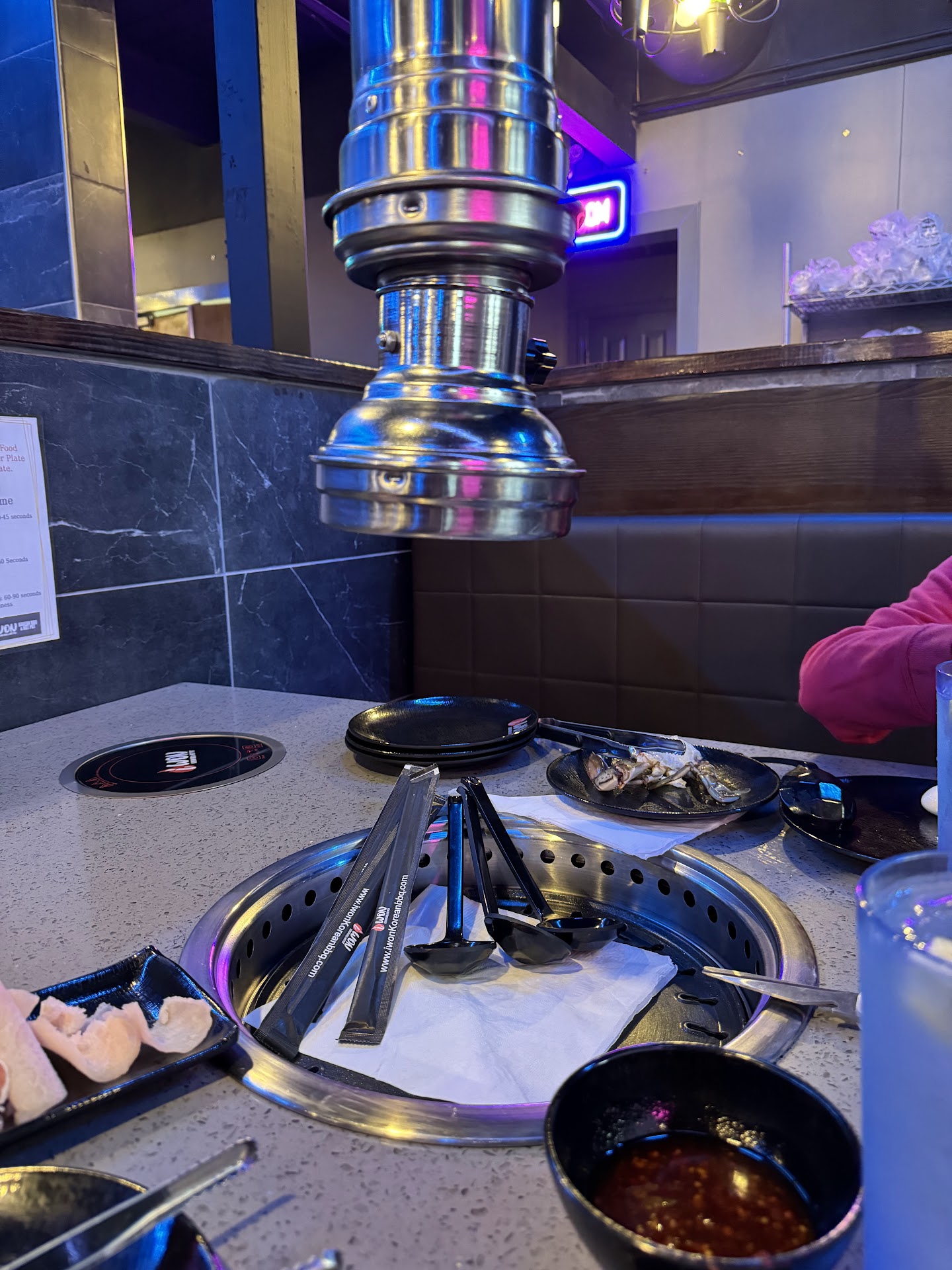 Cooking on our grill was extremely slow and eventually ceased all together due to our table malfunctioning after the first grill plate was swapped. It took about 10 to 15 minutes to cook some pork belly. Once the issue was brought up (we thought maybe the heat was turned down, so we were patient before saying anything), we were promptly moved and the second table functioned. The food was delicious.